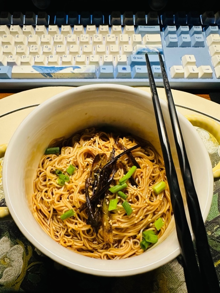 用昨天吃火锅剩下来的葱段,做个葱油面吃吃