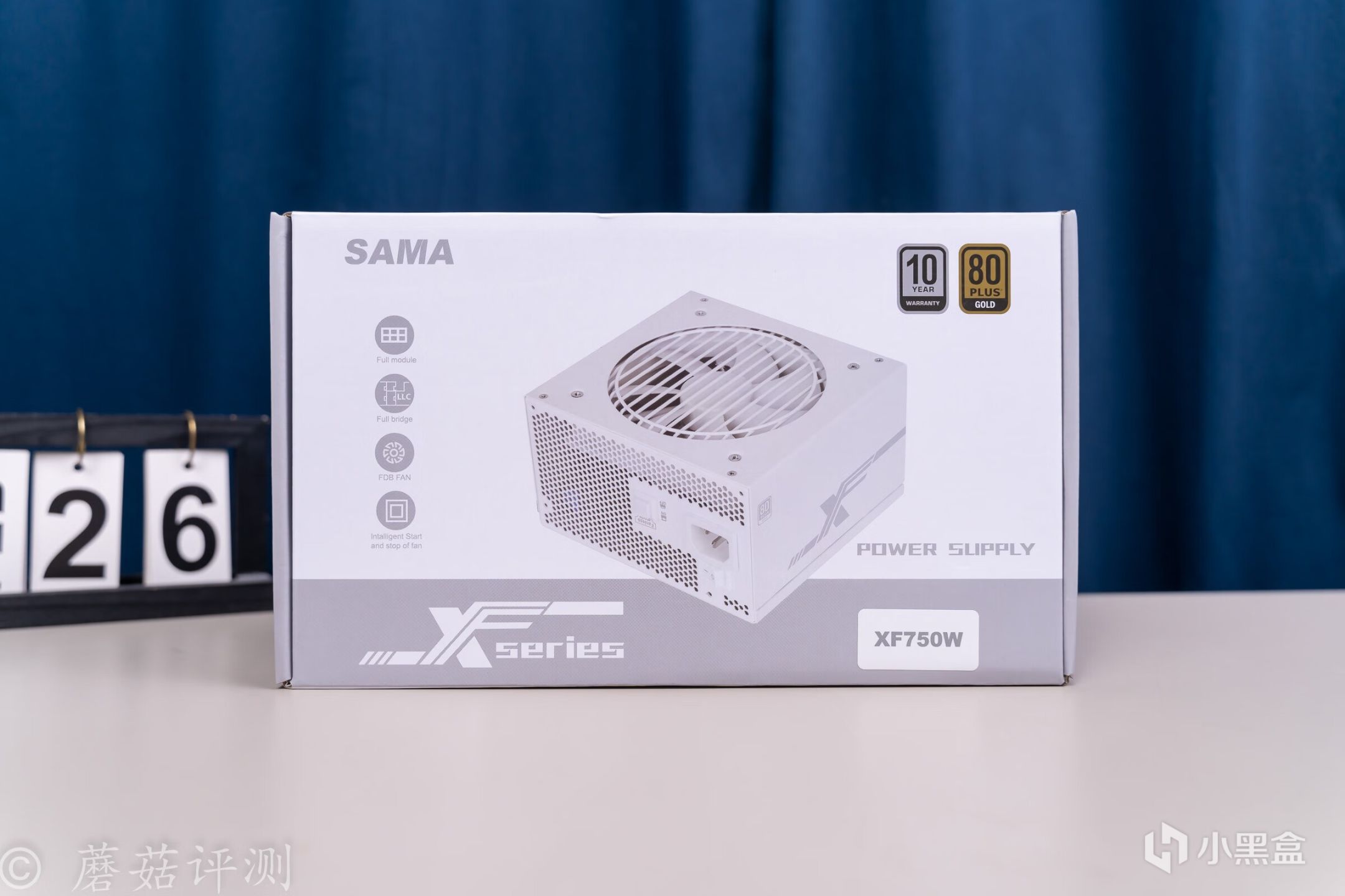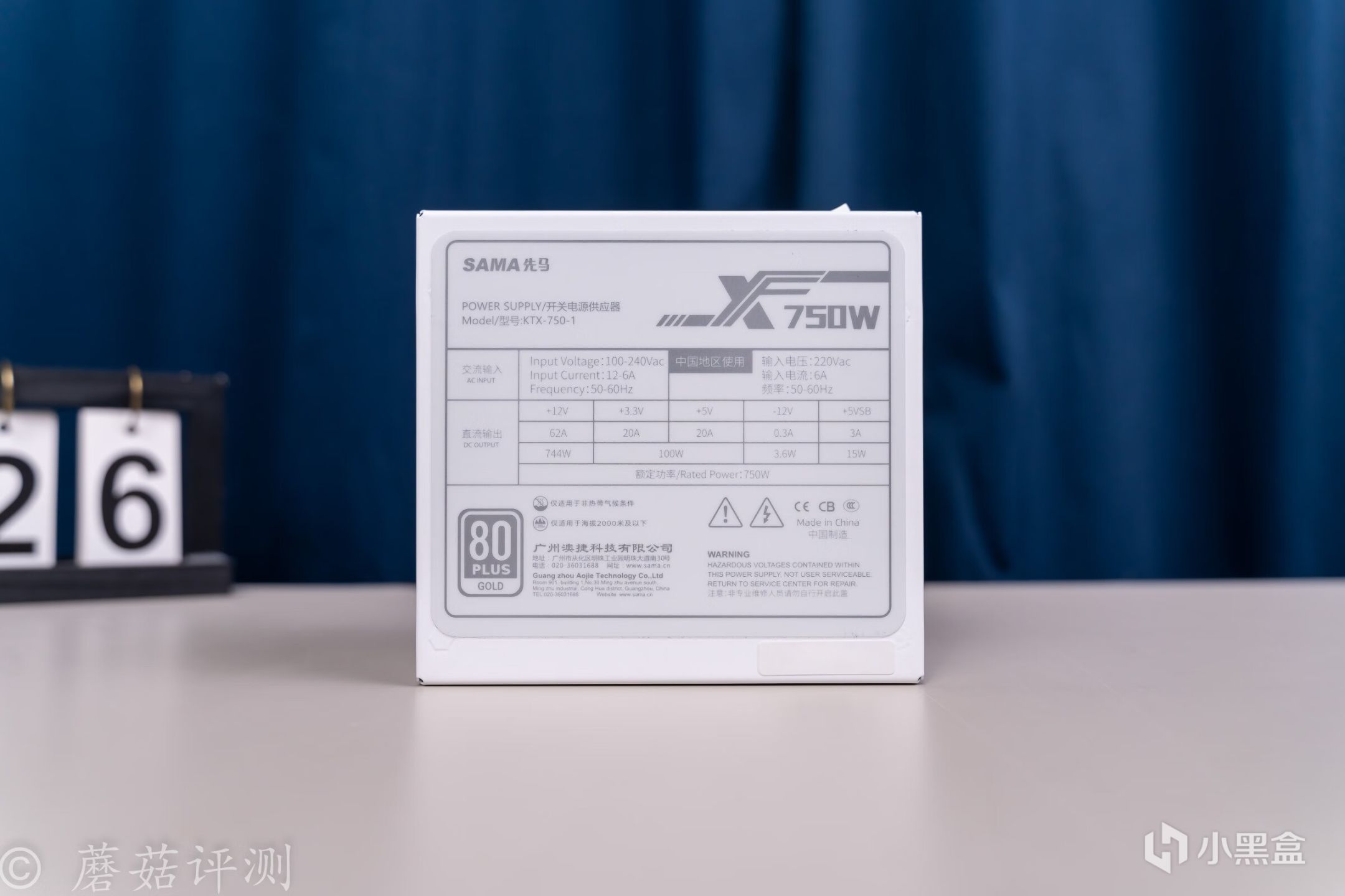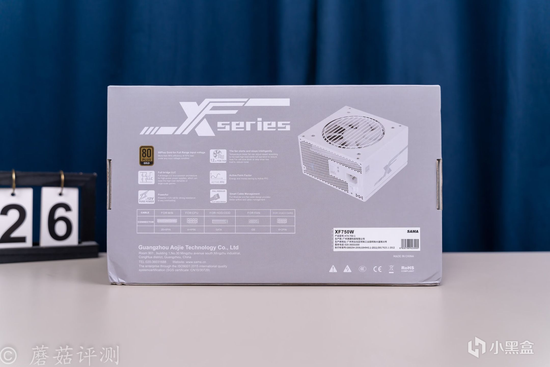 ▼电源的型号是先马的XF750W,电源包装也是纯白色的,电源正面有电源的彩印,旁边有一些功能介绍,其中全桥的LLC看起来还是非常不错的。