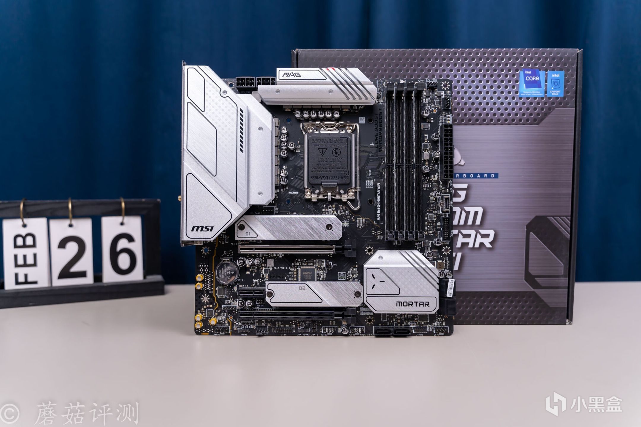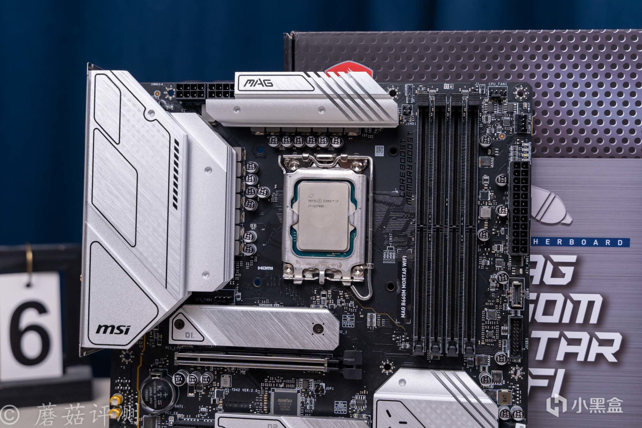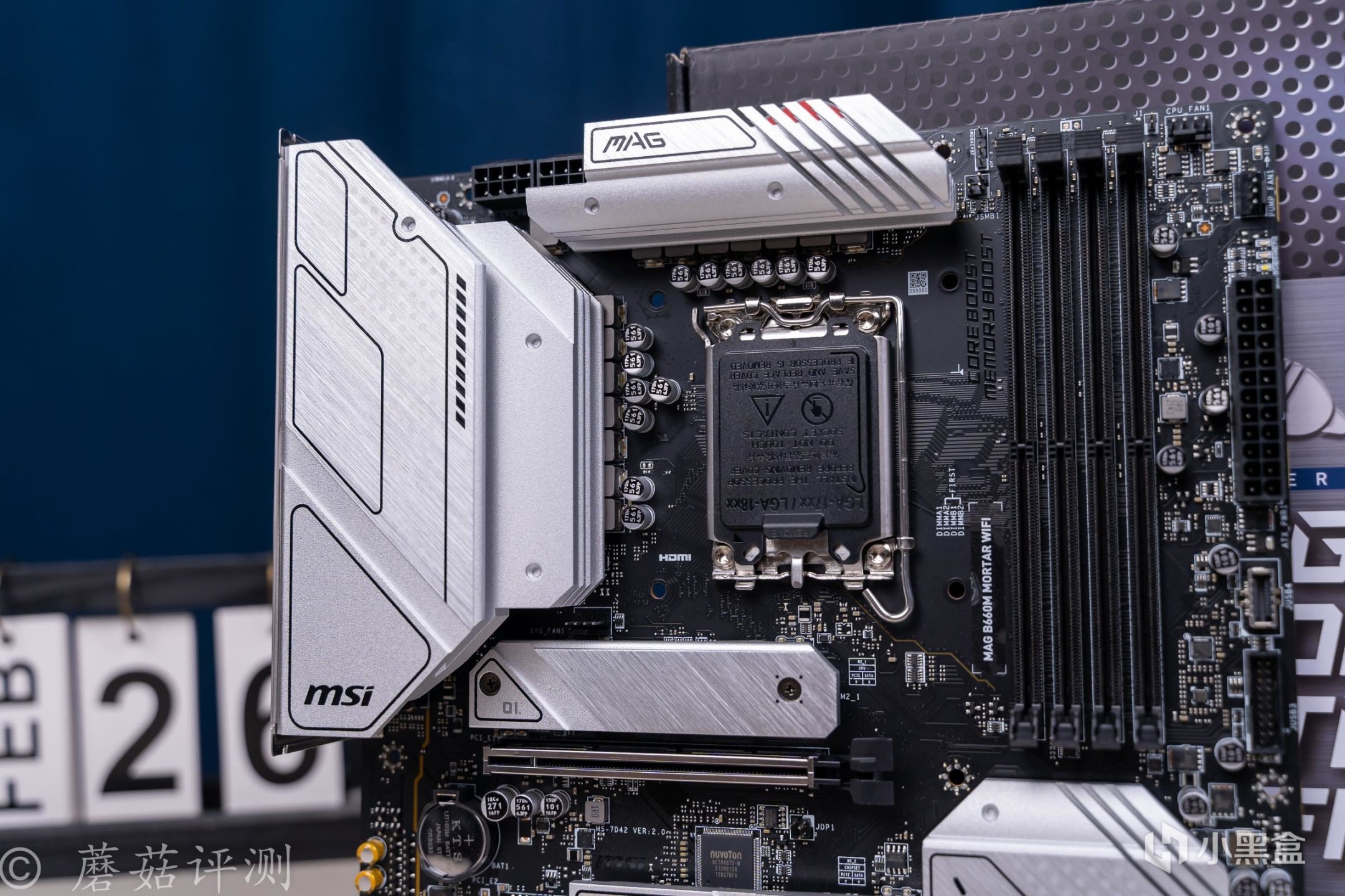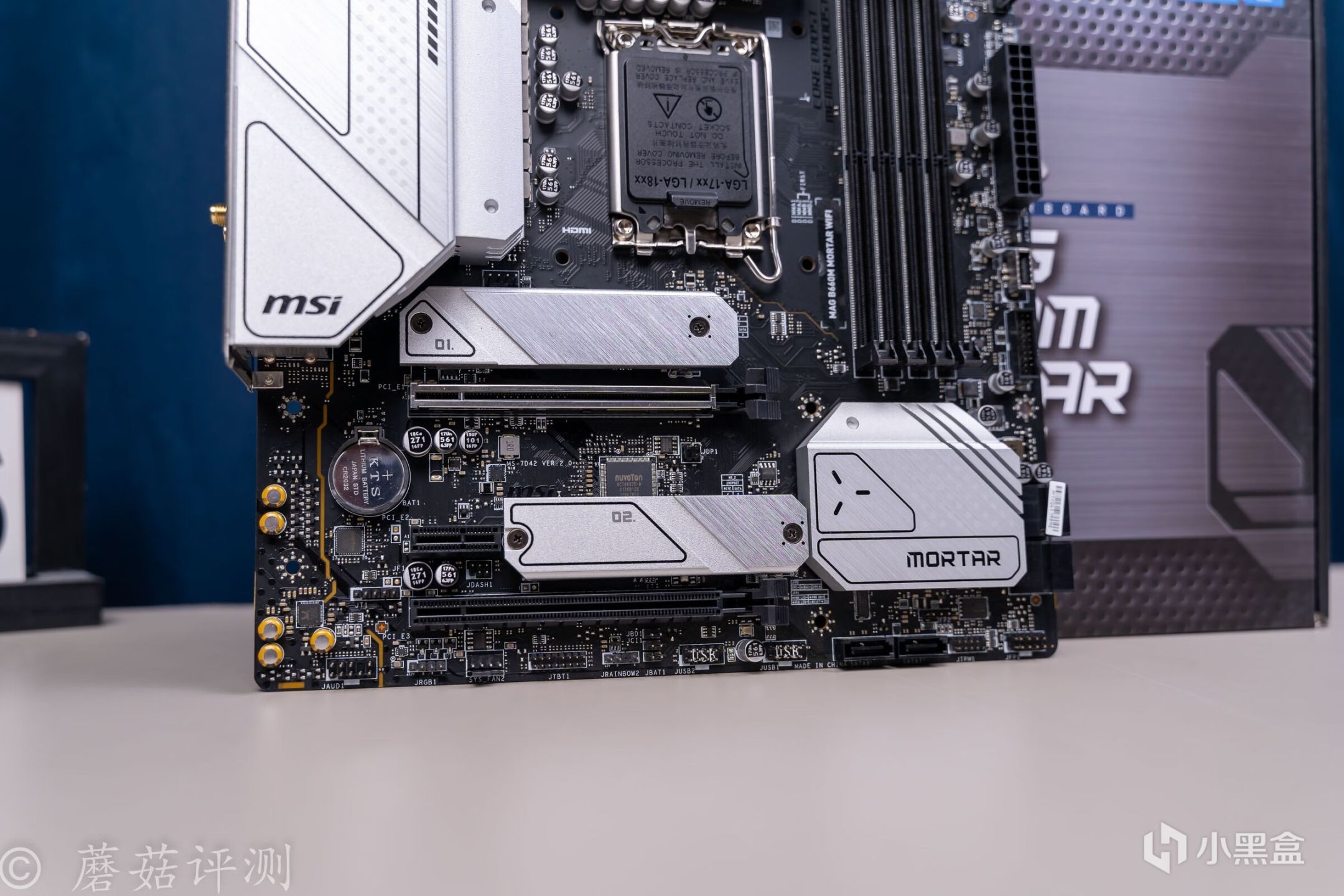 ▼主板是微星的B660M迫击炮WIFI DDR5,主板正面覆盖有大量的金属件,银白色的,表面有漂亮的涂装,整体的质感很棒。