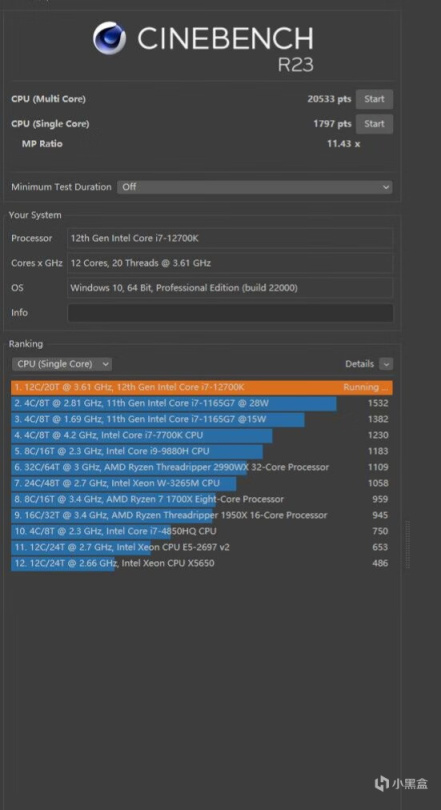 ▼跑个CineBench R23,单线程1797、多线程20533,性能很强。
