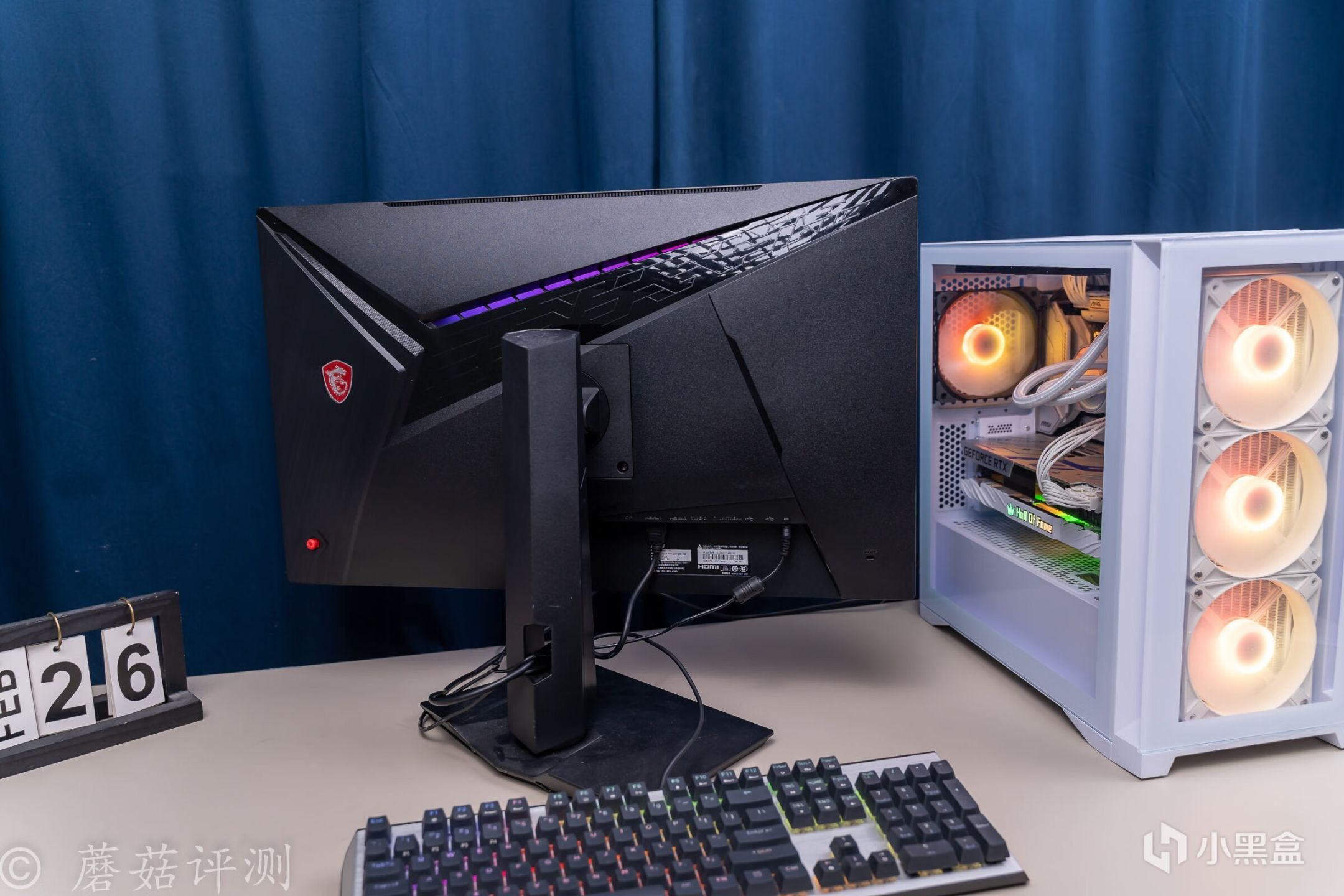 ▼显示器背面的设计非常复杂,还有一条漂亮的ARGB灯带,颜值不错。