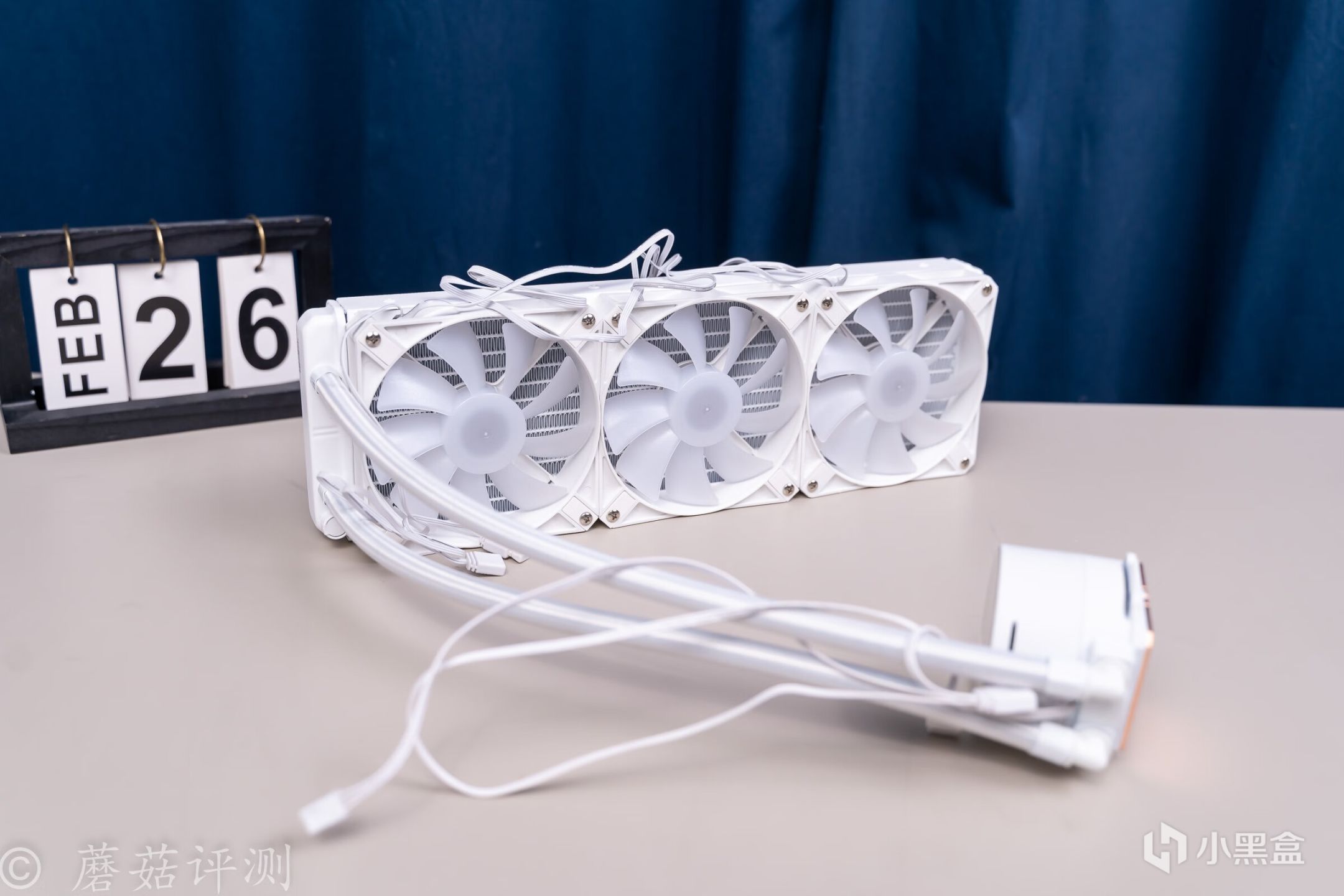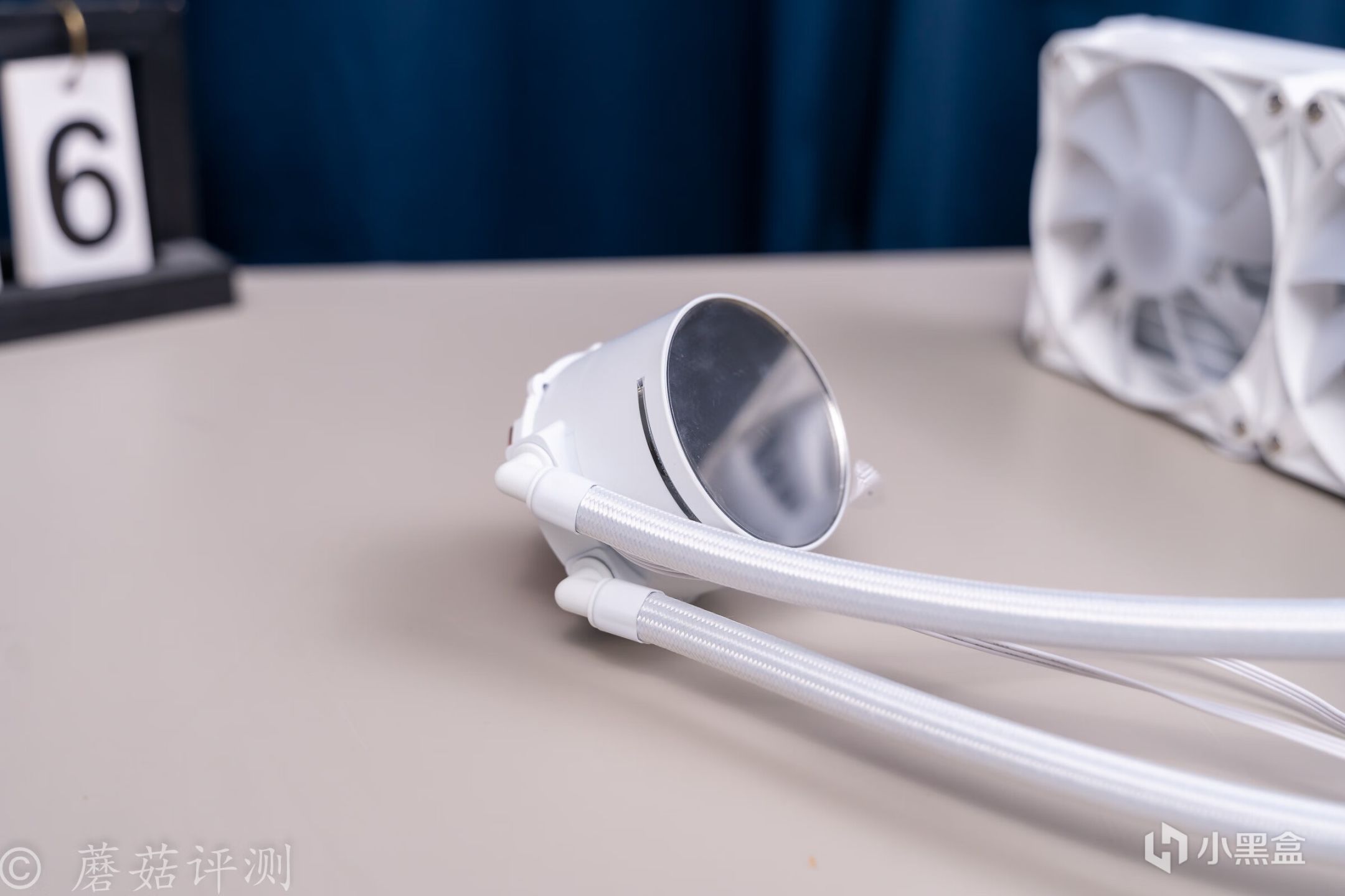 ▼水冷主体采用全白设计,水冷头、 水冷管、水冷排、散热风扇全部都是白色的。
