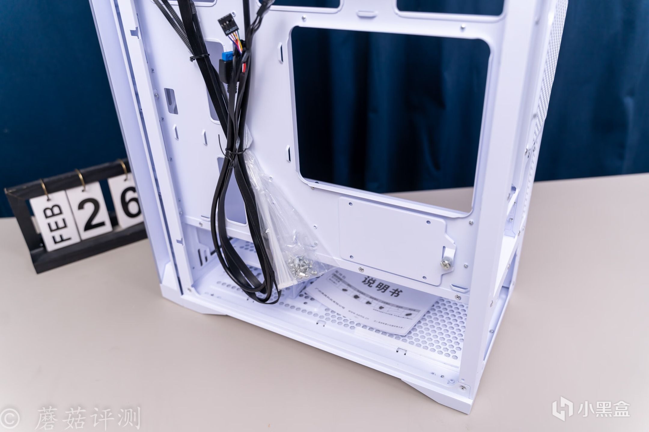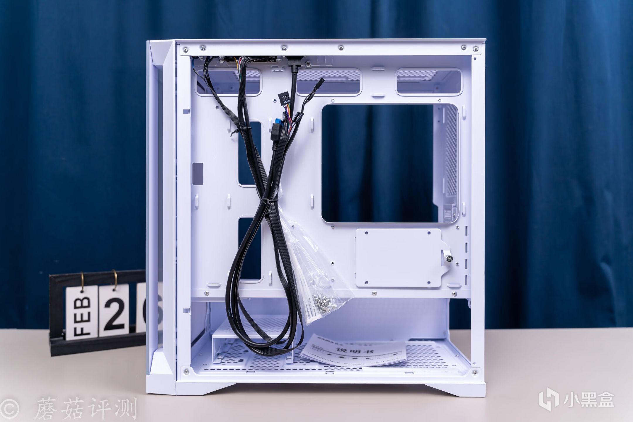 ▼机箱内部的空间设计挺不错的,主板固定在左侧,主板四周有非常丰富的走线开口。