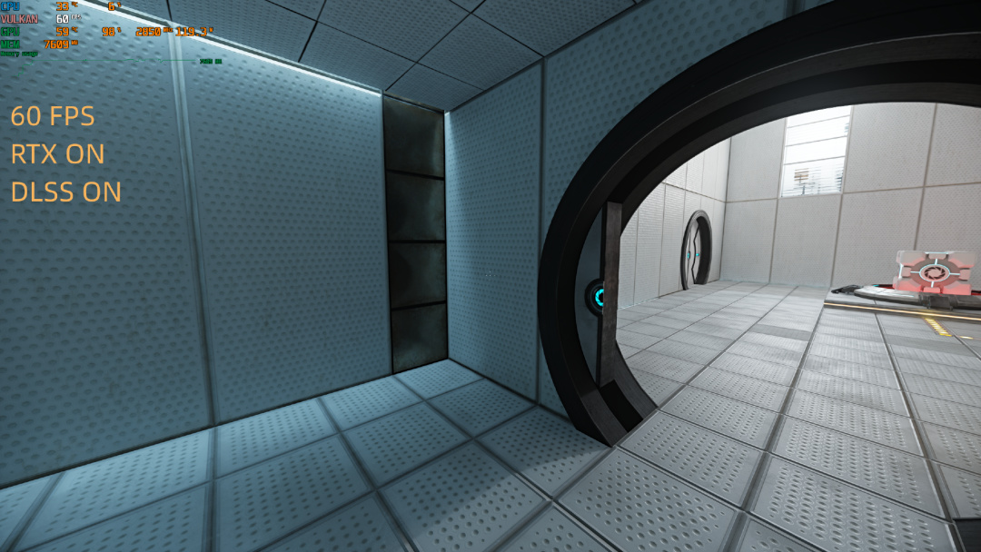 《传送门:序曲》,开启DLSS 3 设为平衡,游戏平均帧从7帧提升到流畅运行的58帧。