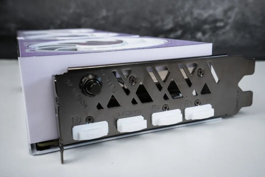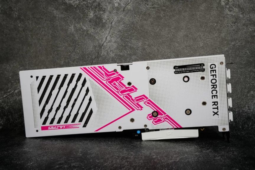 白粉色金属背板,采用开孔更有利于显卡风道流通。