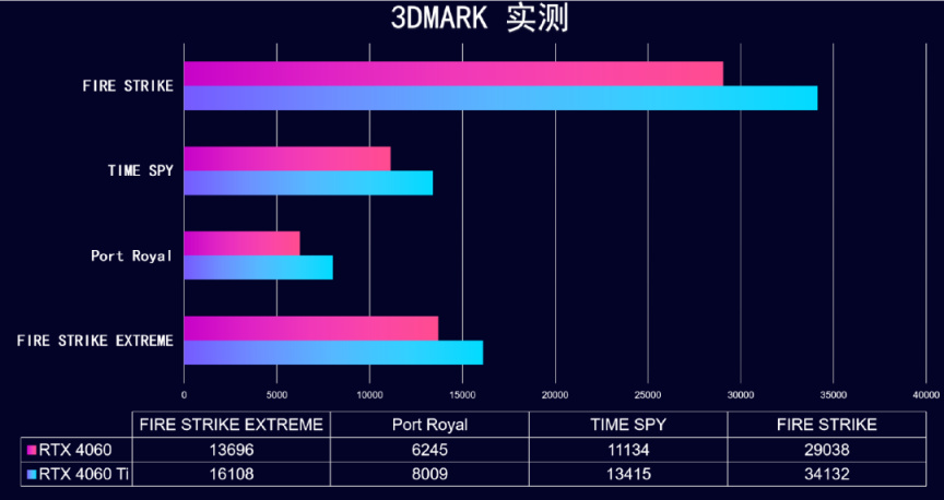 TIME SPY 测试,iGame GeForce RTX 4060 Ultra W OC 8GB是RTX 4060 Ti 80%的性能.FIRE STRIKE EXTREME 测试 ,则为RTX 4060 Ti 83%的性能。
