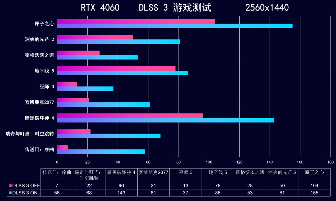 测试的其他几款游戏,当开启光追+DLSS 3时也有至少20%的提升,可以保证1080P 60---100+FPS的游戏流畅体验。