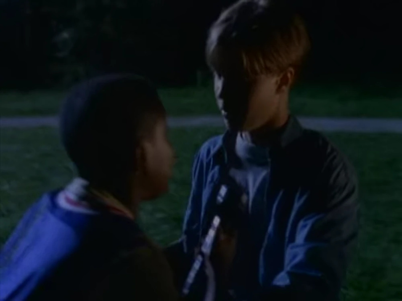 “营地之夜”如期而至,杰伊提出要和罗杰一起去禁屋探险,比利要照顾受伤的科林,拒绝了他们的邀请。小屋外的空地上排列着众多塑料帐篷,比利和科林钻了进去,躺在睡袋上,杰伊和罗杰则先行一步了。因为外面太冷,地面也很硬,比利和科林回到了小屋里,靠在窗口边上,想看看伙伴们的冒险进展如何。此时的营地一片寂静,比利甚至能听到二人的嘻笑声,低语声,以及他们的腿擦过野草的沙沙声。