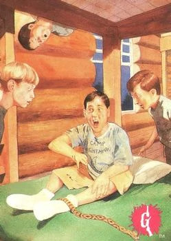 女生营地在棕色的小河旁边,男生营地更远一些,平缓的山坡顶上矗立着一座铺着白木瓦的大房子,大概是活动礼堂。比利、麦克、杰伊和科林被分配到了一间屋子里,这里的天花板很低,墙壁边放着双层行军床,其中一张床已经有人住了,其主人便是四人的辅导员拉里。拉里又高又瘦,满脸雀斑,他警告众人别乱动他的东西后就离开了。