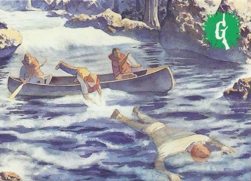 早上醒来,天气灰蒙蒙的,乌云密布,空气寒冷。比利在找拉里的途中问了其他辅导员,没有人知道科林和杰伊的下落。终于,他在河边找到了摆弄金属小划子的拉里,与克里斯和汤米一起穿上了救生衣,上了船。小划子在水面上颠簸着,水流湍急。拉里忽然站了起来,探身向前,指着打着漩涡的河水,让比利看里面的鱼。