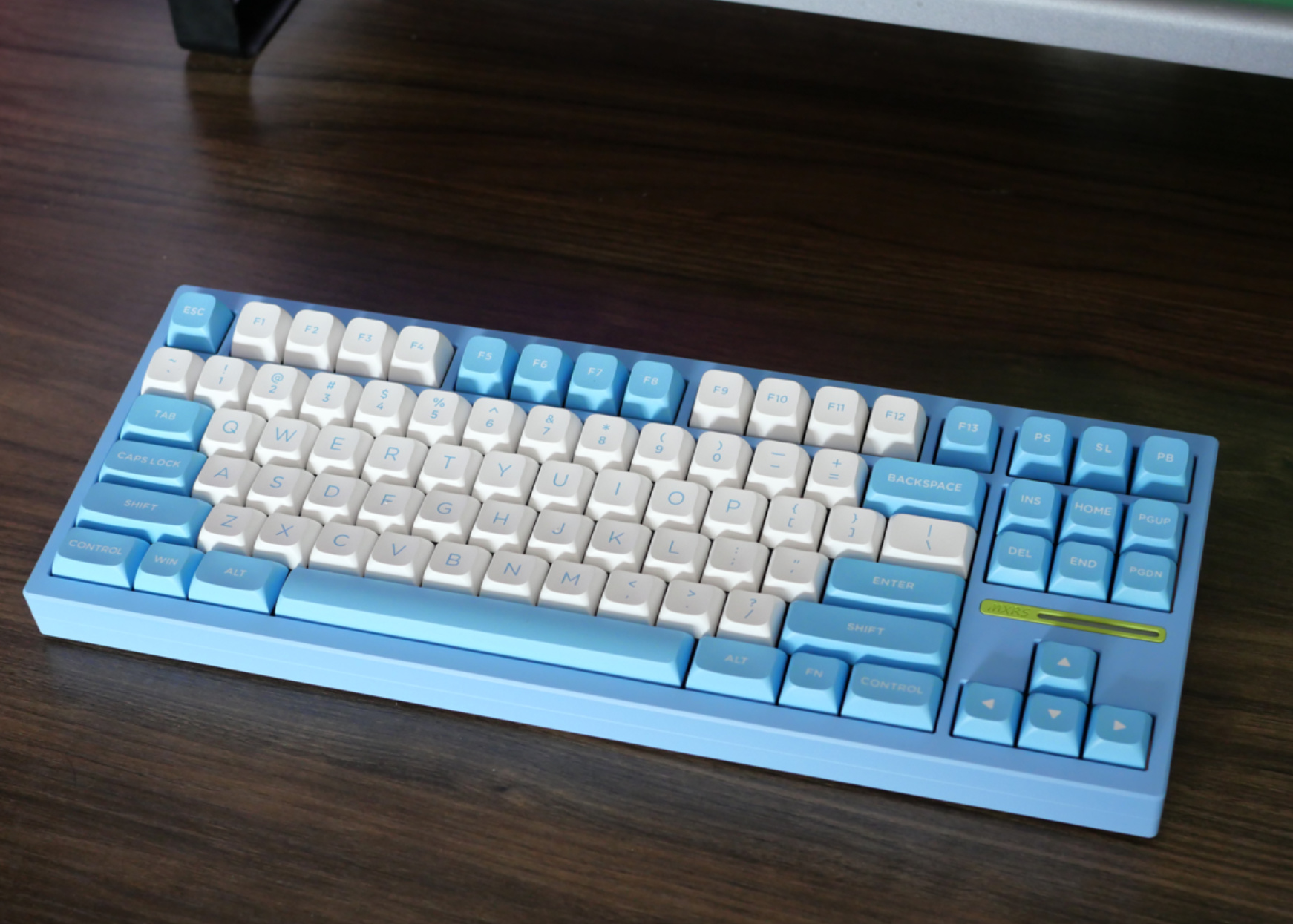 轴体是TTC的高铁系列轴体,应该是金星轴,属于厚润线性轴,配上这个键帽,上手就是麻将音。