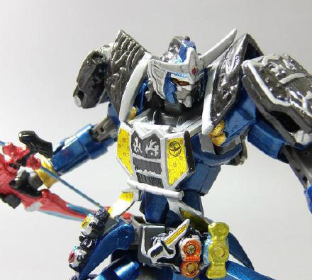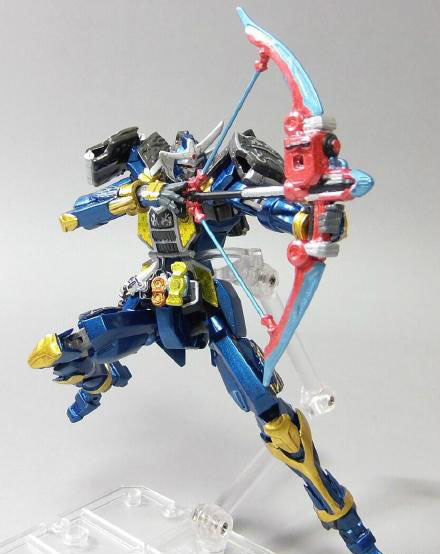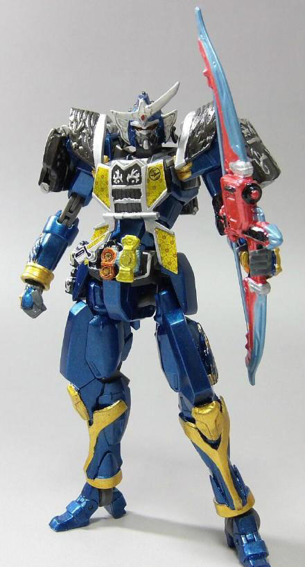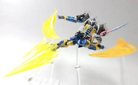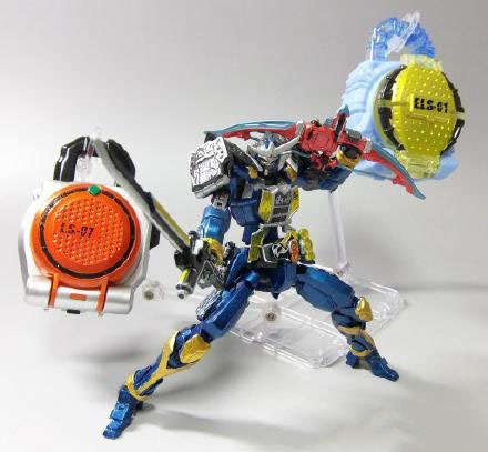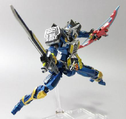 除了配色和细节移植外,模友还移植了假面骑士的各种装备和特效件,与这款改造的高达模型相配合,效果还是不错的。