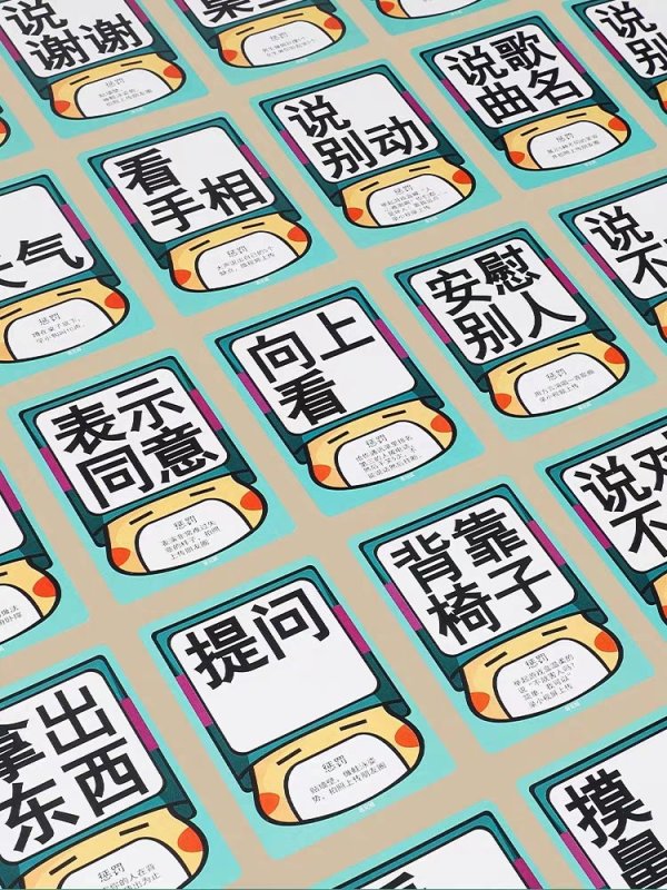 惩罚完本轮输了的人后要贴上另外的卡片,参与玩家需要不断地用各种方法引诱他人中招。