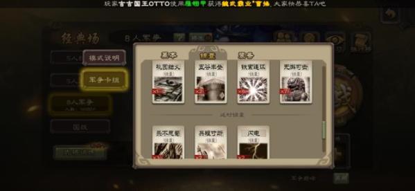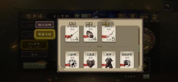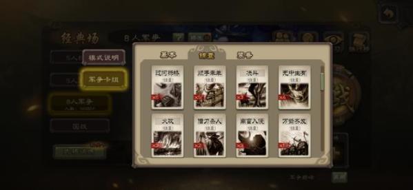 牌局分爲八人局和五人局,也可以雙人對砍或者單挑在後續版本三英戰呂布,誅仙滅王系列。