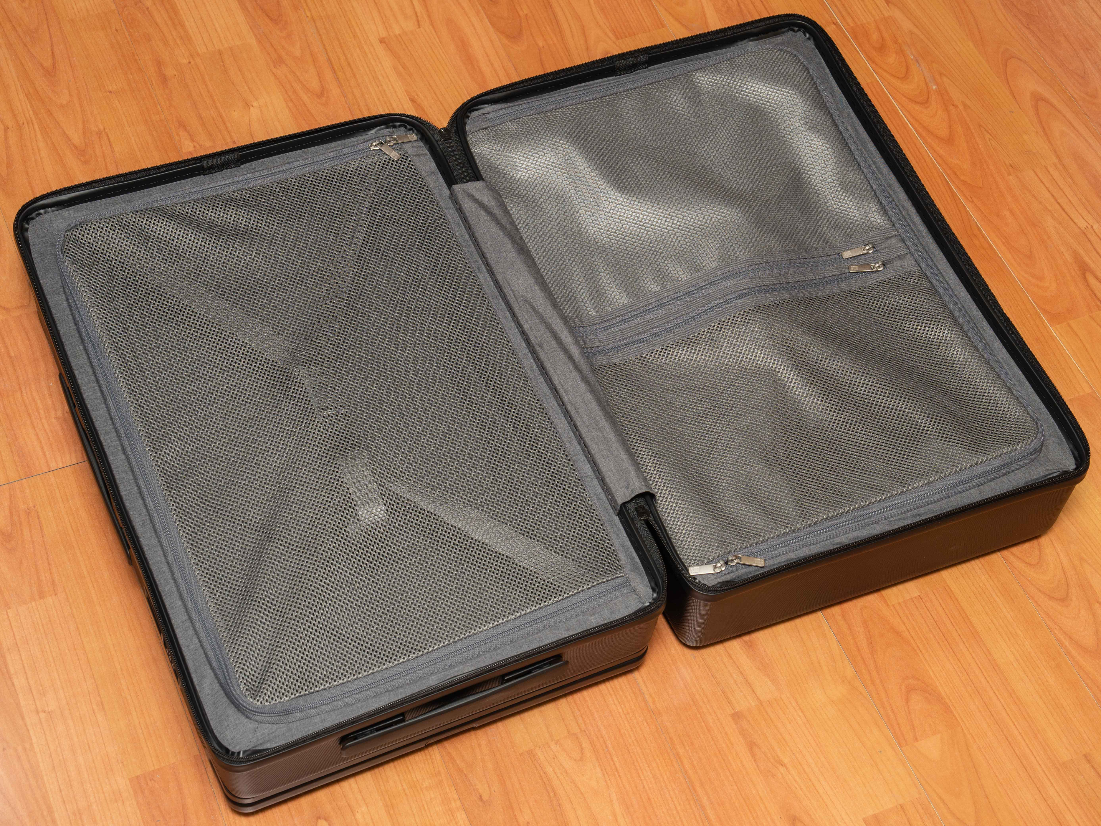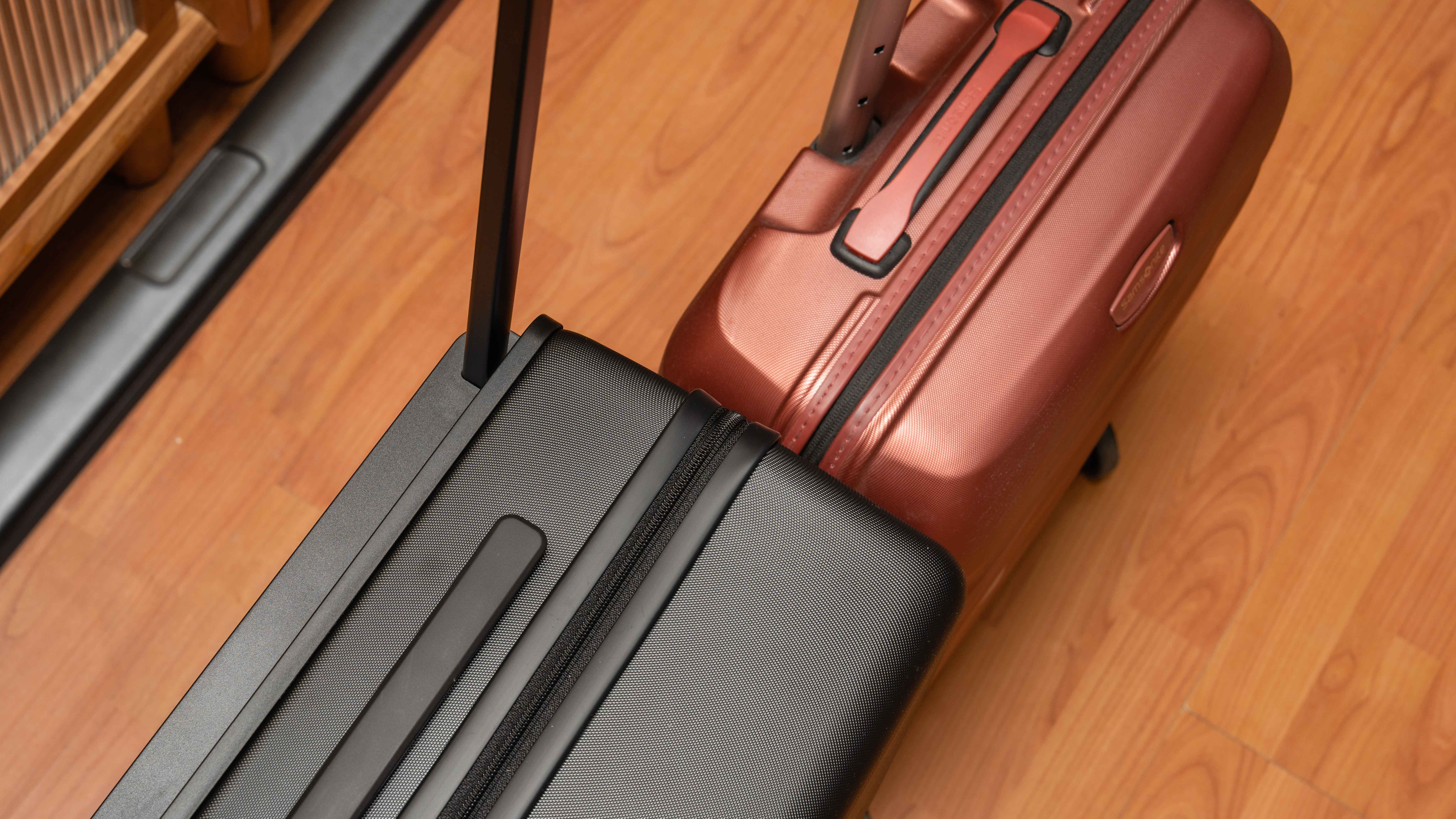 新秀丽的单拉杆已经比普通双杆利用率高了,地平线8号的款拉杆直接把拉杆藏在边缘,可以说已经没有再压缩空间的其他办法了。