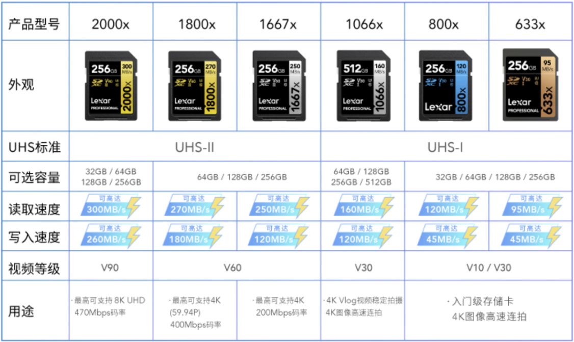 如雷克沙官方的表格,一般来说拍照V30就够用了,录像V60一般人也够了,相信很少业余玩家会去拍8K视频,卡真的没必要买太贵的,不如在容量上加点钱。