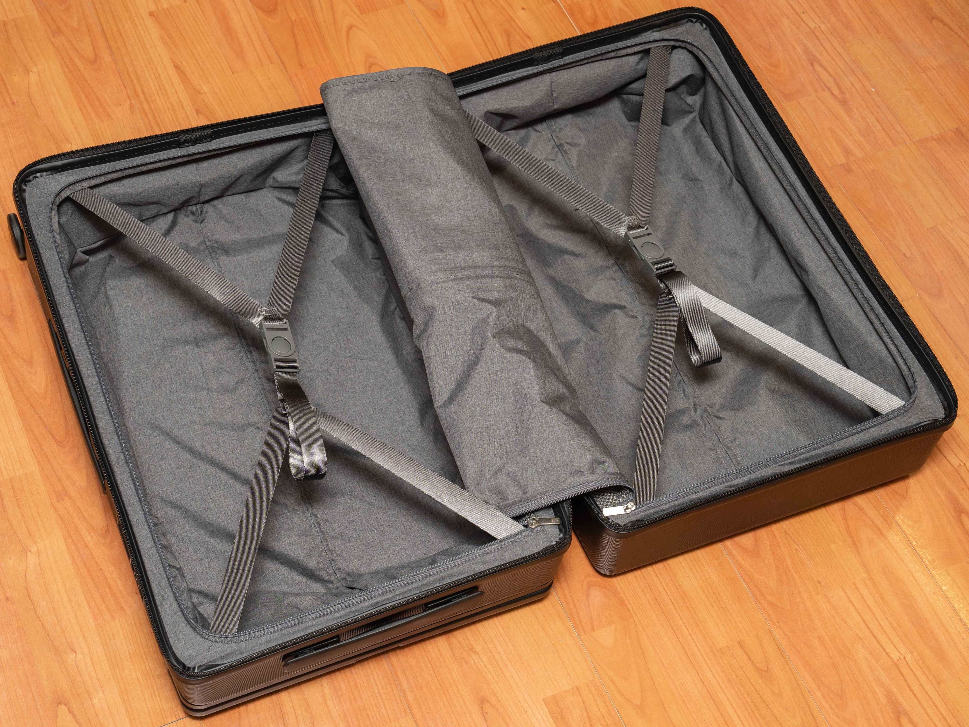 地平线8号箱子的空间利用率是拉满了,两副束衣带开合也非常顺滑。