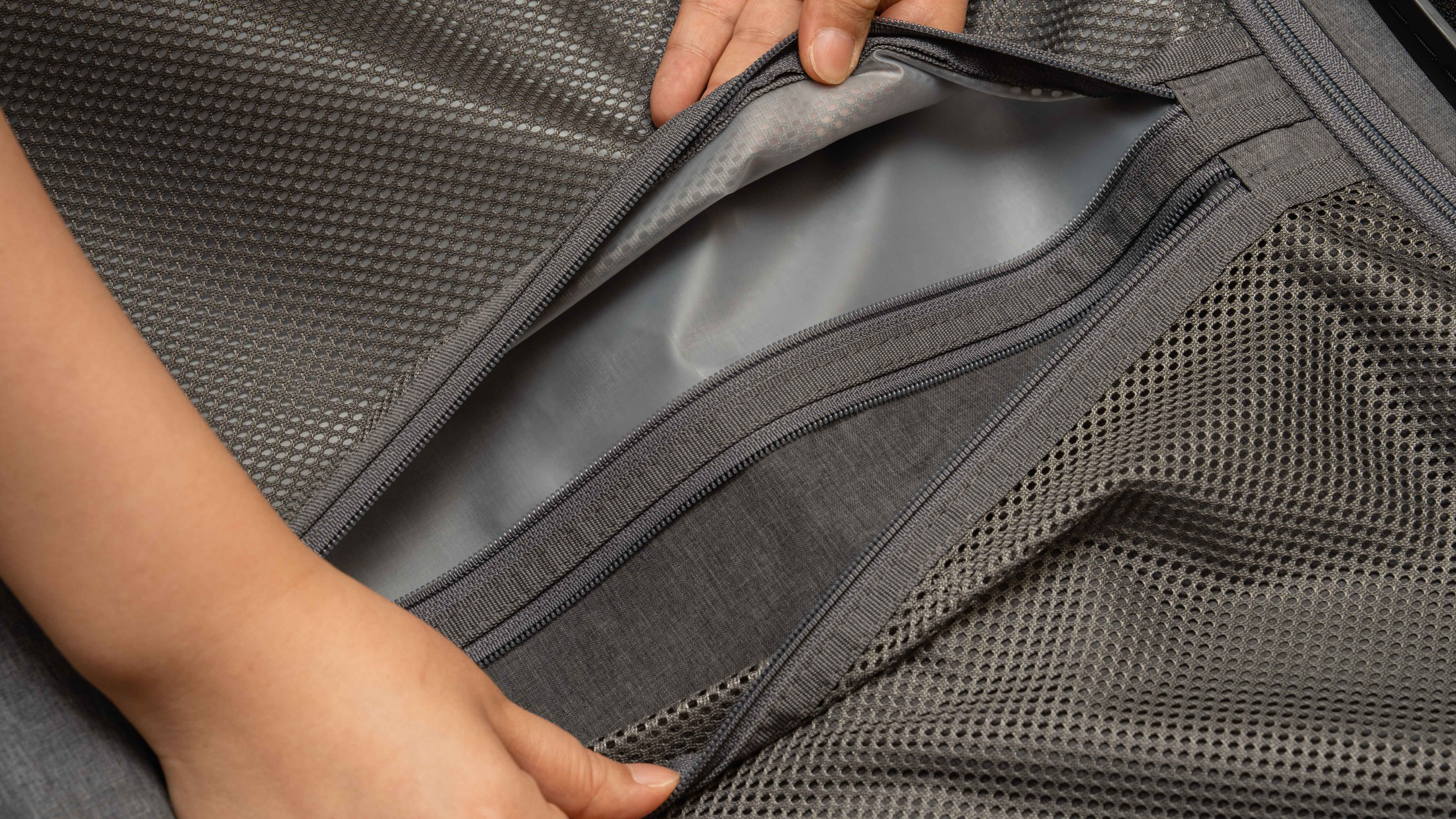 地平线8号的内部设置非常合理,右侧上下拉链分区,可以塞内裤和其他重要东西,两边内部都有交叉束衣带可以收纳所有东西。