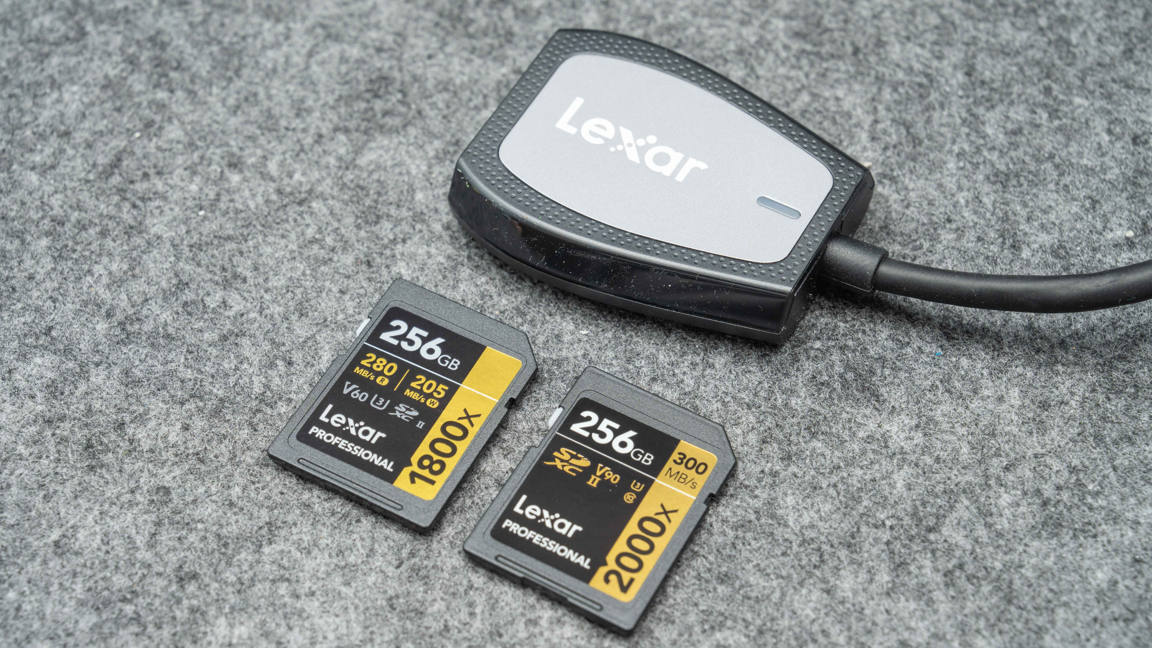 另外高端卡必须配雷克沙的高速读卡器,支持UHS-II,最高312MB/s的传输速度,正好匹配2000x的300MB/s,最快速度传输数据到电脑。