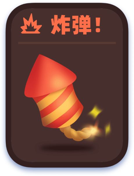 11.炸弹:摸到此牌后若没有拆除牌则出局。