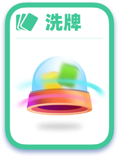 4.洗牌:摸牌前使用,打乱牌堆里牌的顺序。(可用于猜出或者查出炸弹在某一位置时可能威胁自己时)