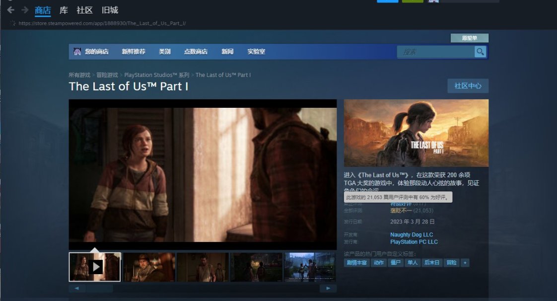 就在近期最后生还者1迎来了一次涨价,但是好评率没有下跌,反而有回升的迹象,好评率现在更是达到了60%,本人也是在近期购买了最后生还者1体验了一下。
