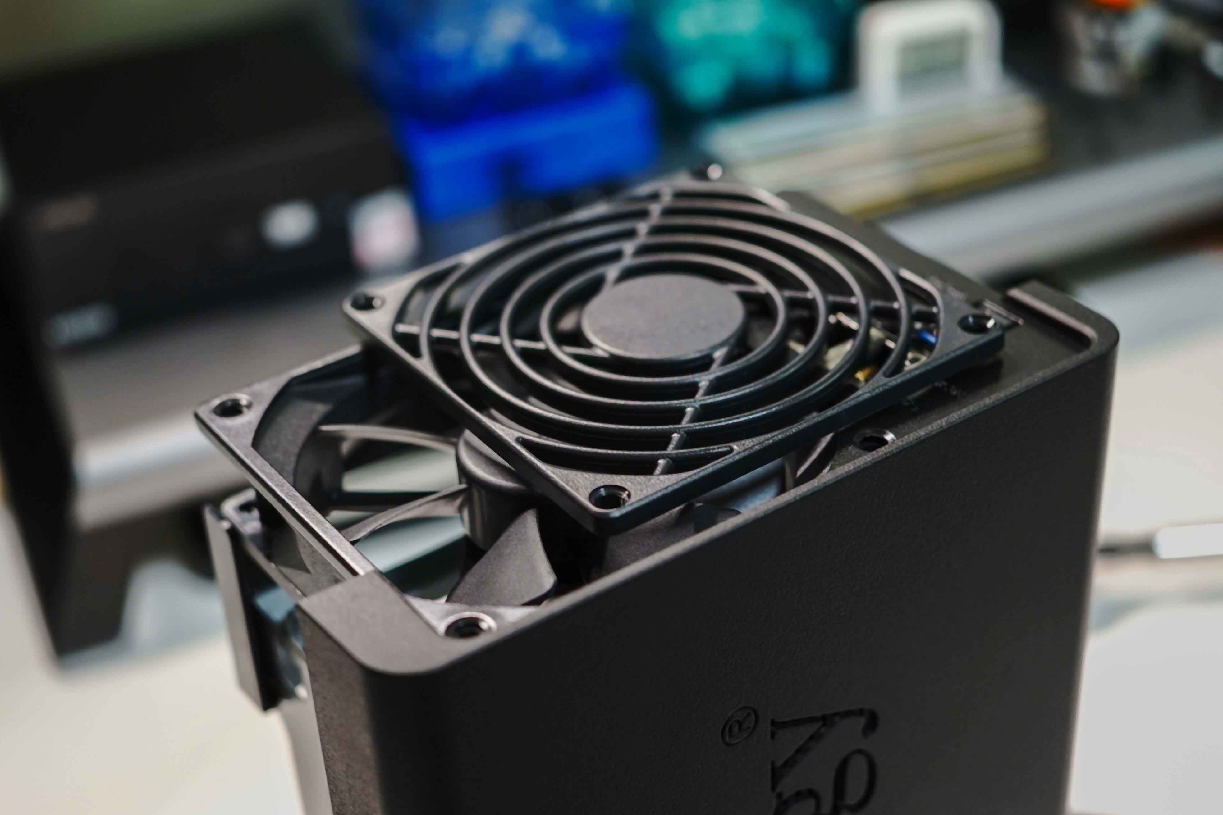 给风扇清灰同样不需要拆卸外壳,卸掉背部用于固定防尘罩的四颗螺丝即可清理,后期如果发现硬盘工作温度太高,拿气吹和毛刷打理下风扇就行。