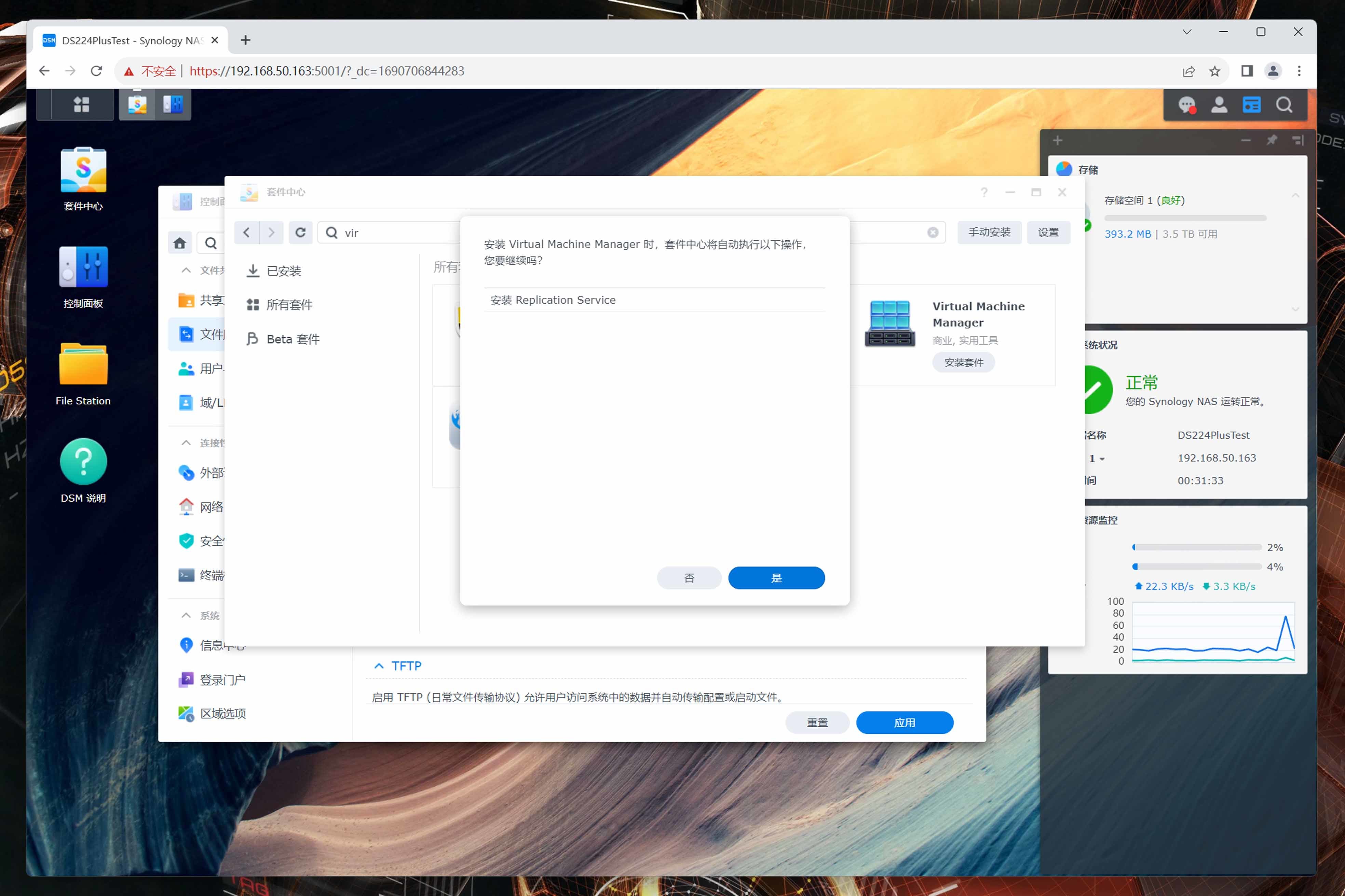 这次的DSM7.2更是大刀阔斧做了改革,比如支持库比较老的虚拟机VirtualMachineManager就需要重新安装,对用户后续稳定使用其实是好事,下文会单独说一下Docker玩法的改动。