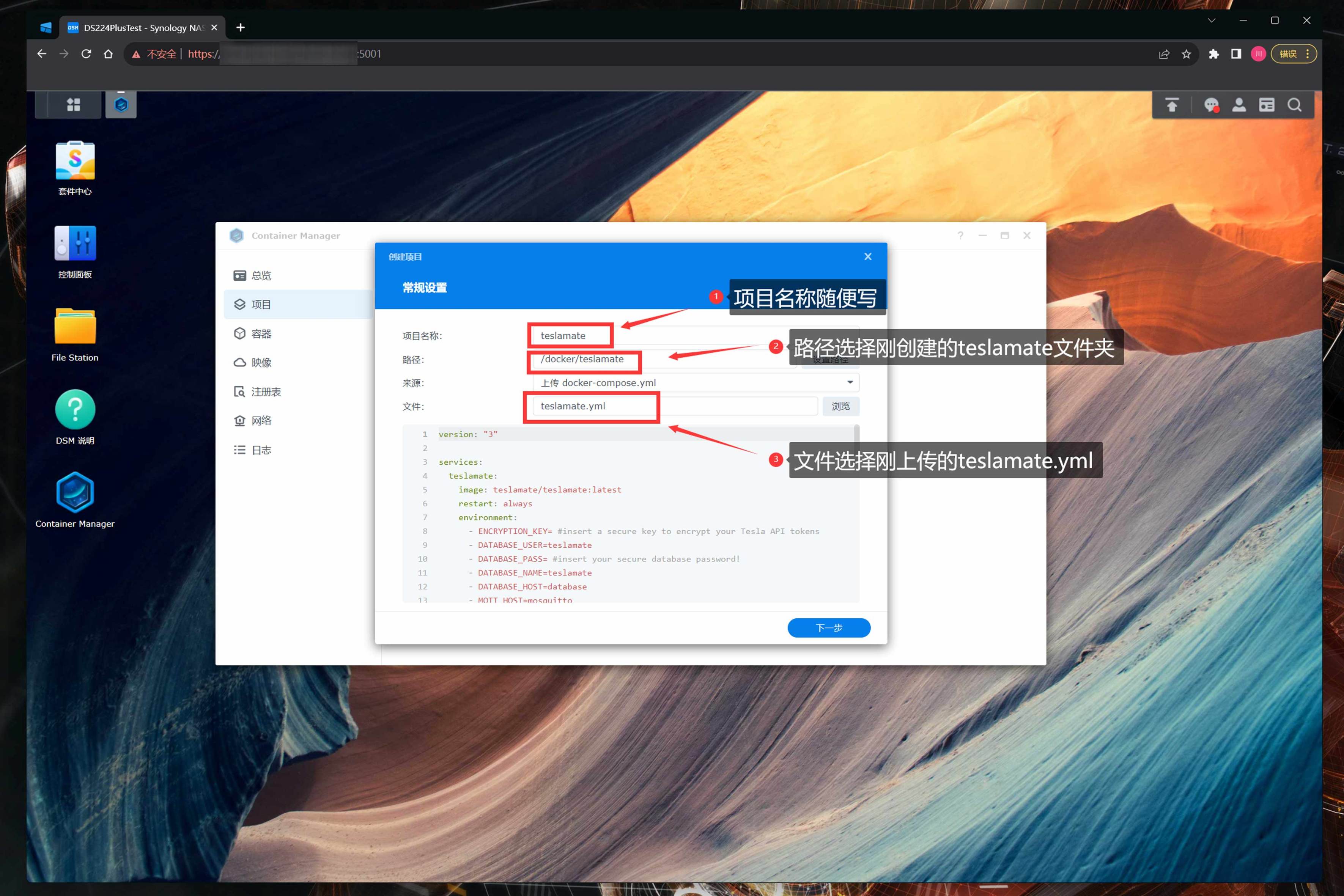 这里以特斯拉官方项目TeslaMate为例,部署该项目需要关联teslamate、database、grafana和mosquitto一共四个容器,如果走老版本Docker管理器很容器出现关联错误导致失败。