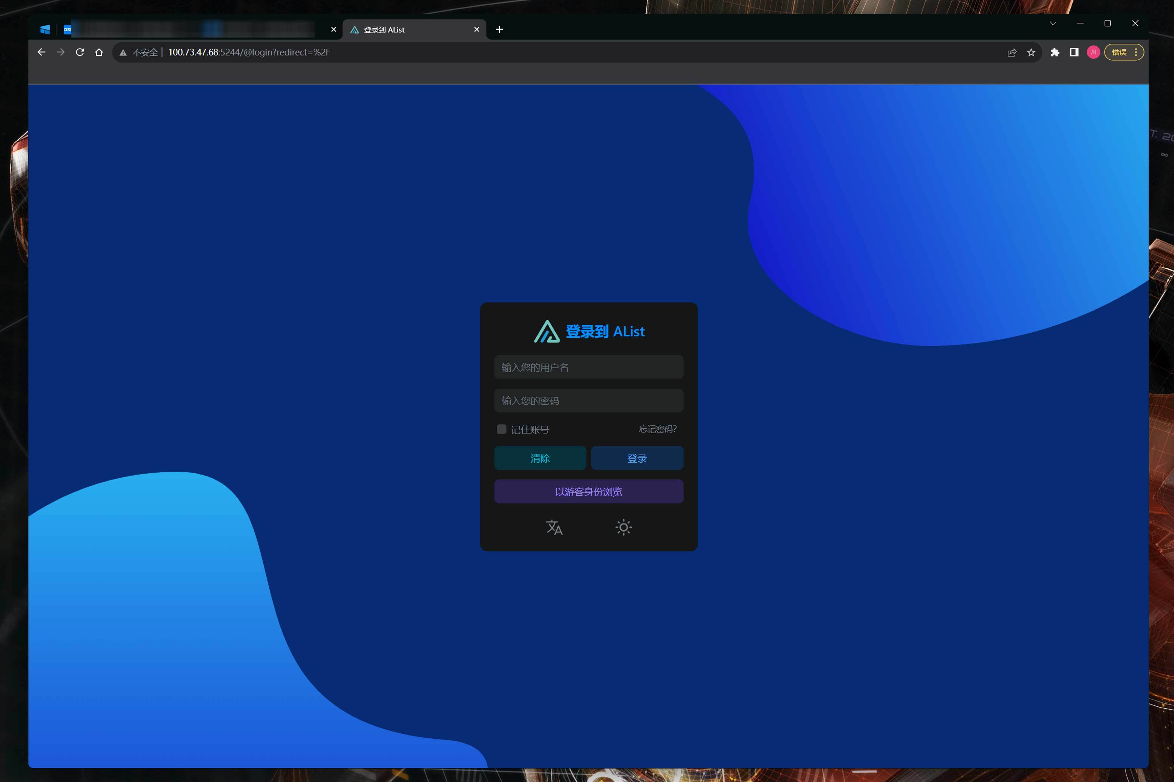 等执行完成后浏览器输入IP+5244端口号即可访问Alist的网页后台,相比老版本Docker那种一路下一步的操作逻辑,个人认为这种一个页面全搞定的方式更方便一些。