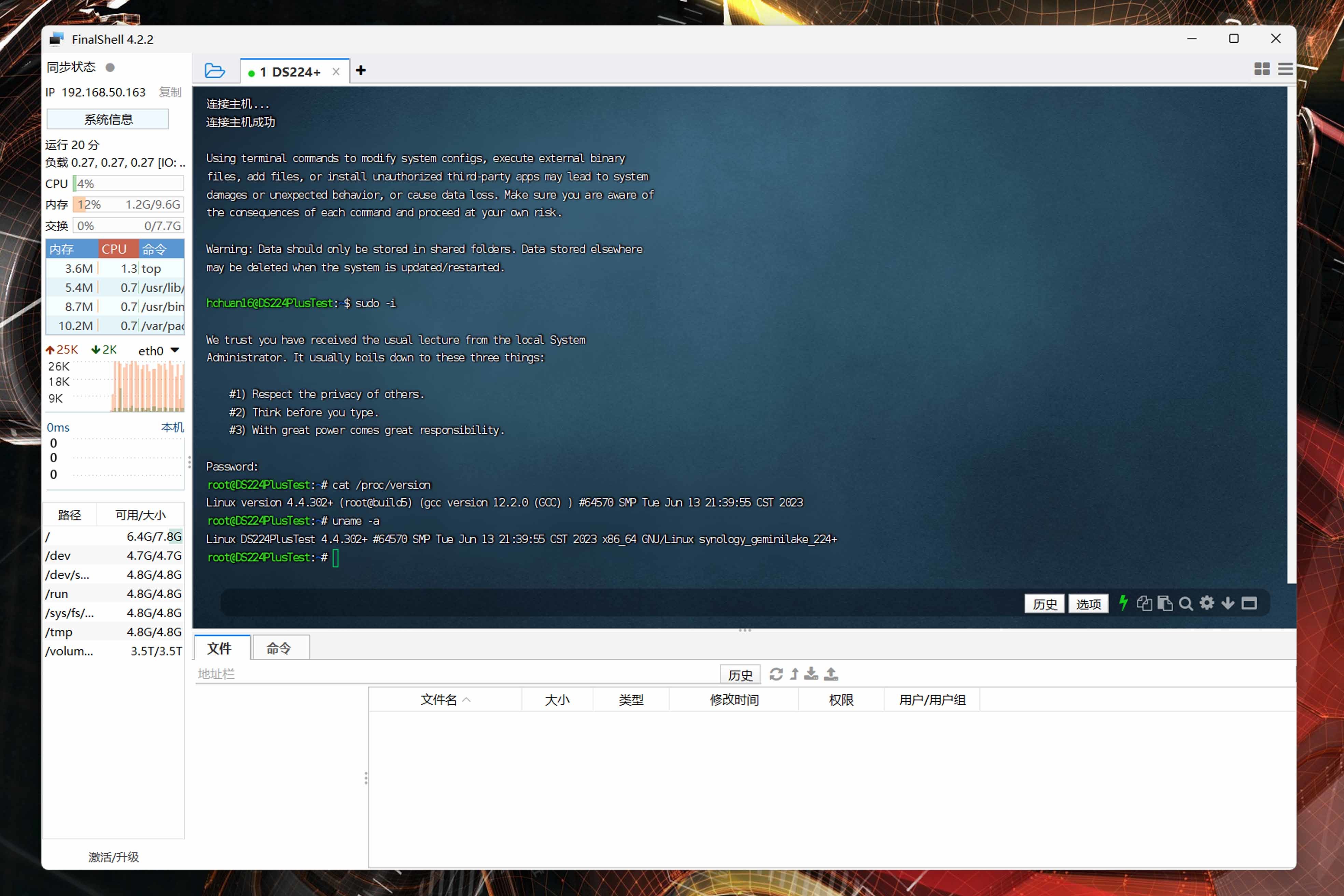完成初始化流程后开启SSH,通过cat /proc/version命令可以看到完成的底层系统版本:
