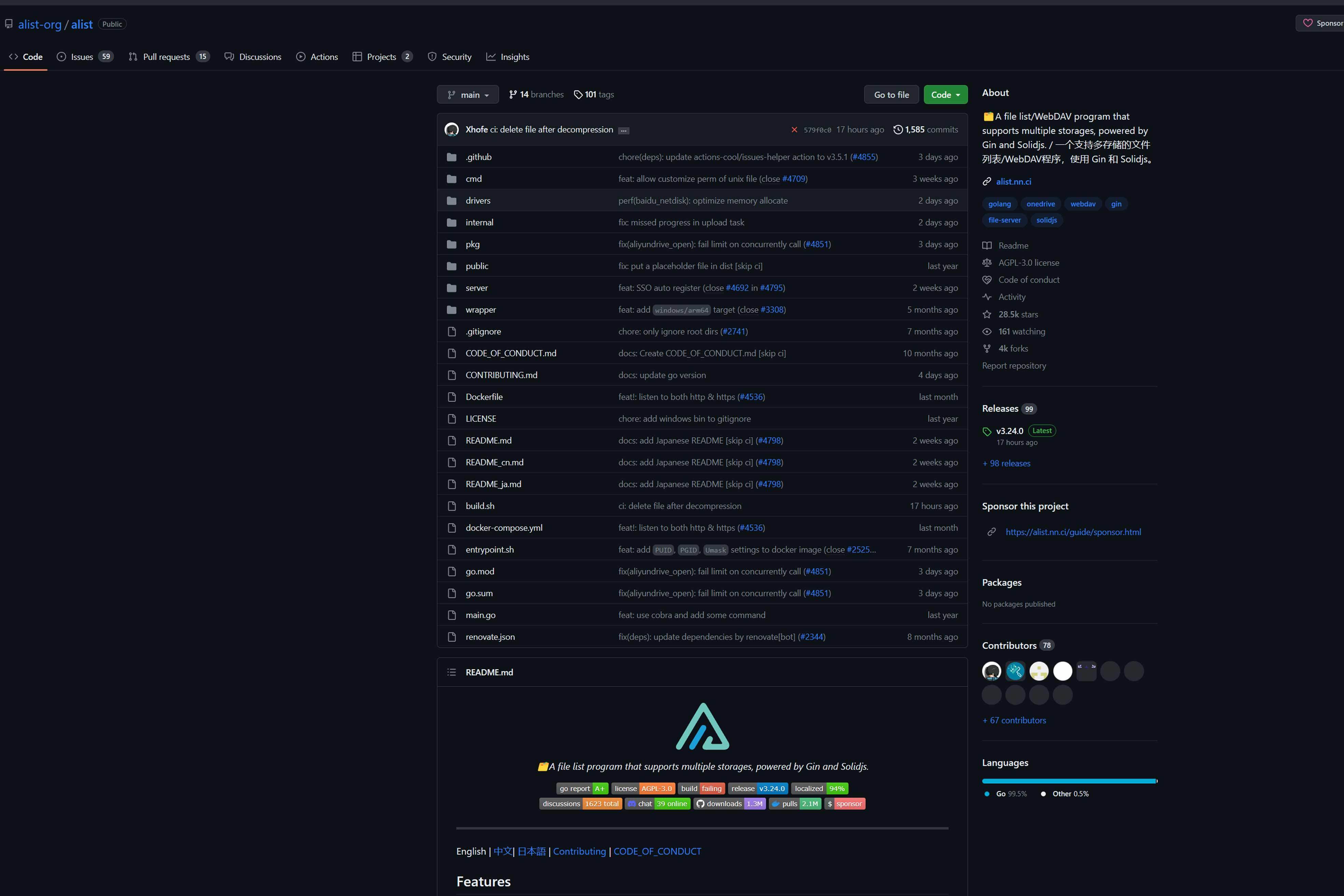 这里以实用性非常强的网盘综合管理工具Alist为例,大家可以对比一下老版本Docker的部署方式,使用项目名称为xhofe/alist。