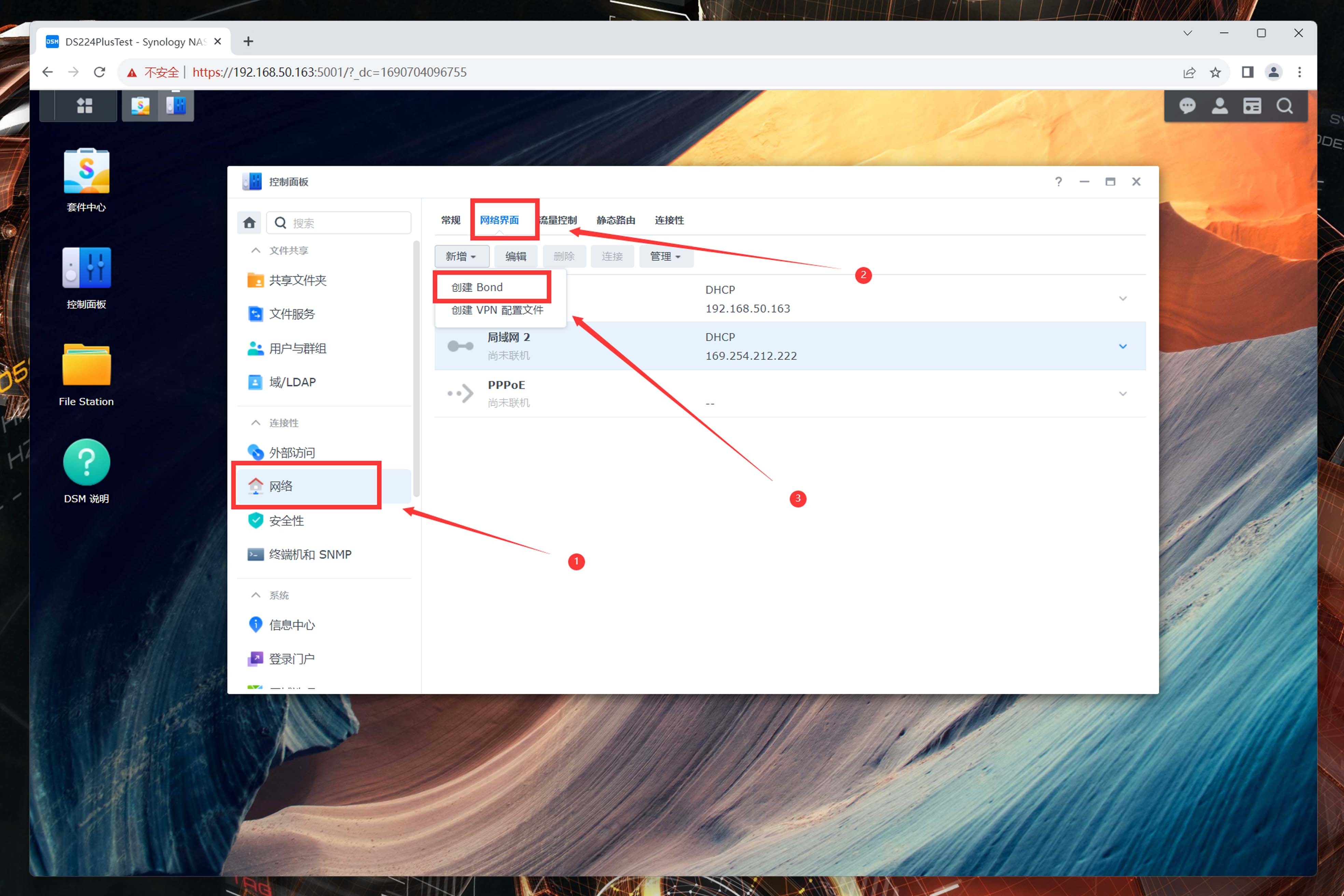 网络这里要重点说一下,和DSM6.x系统有很大区别: