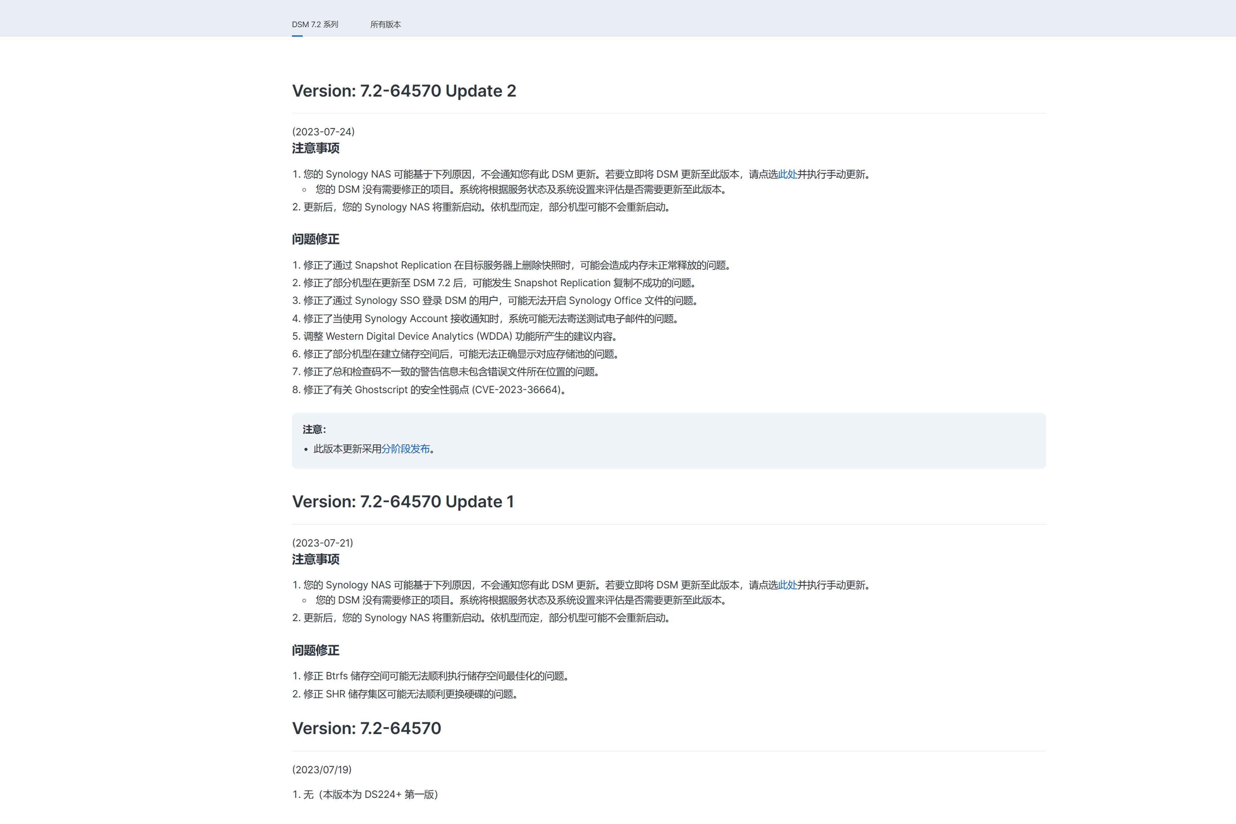 系统方面,作为原生搭载最新DSM7.2的型号,群晖DS224+上来就啪啪啪更新了两次,给大家一下DSM7.2对比上一代系统的区别: