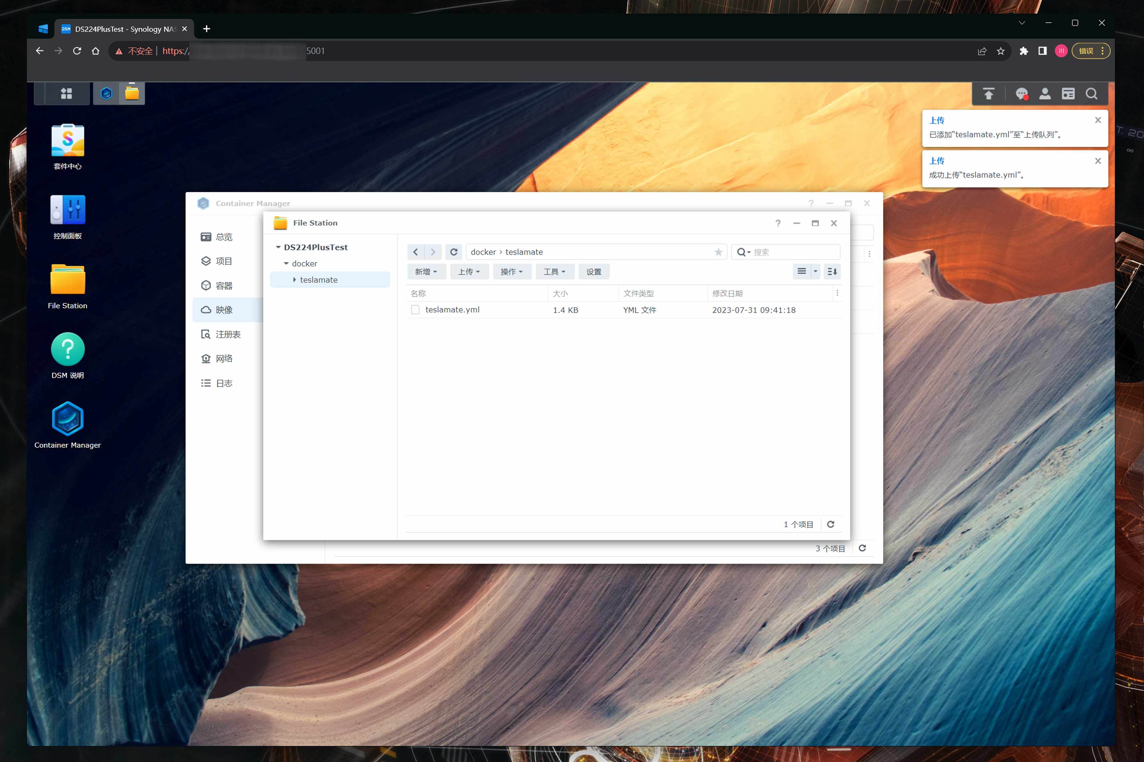 第二步开始部署,编辑完yml文件之后回到群晖的网页后台,先进FileStation创建一个用户保存配置文件的文件夹,这里我放在Docker目录下。