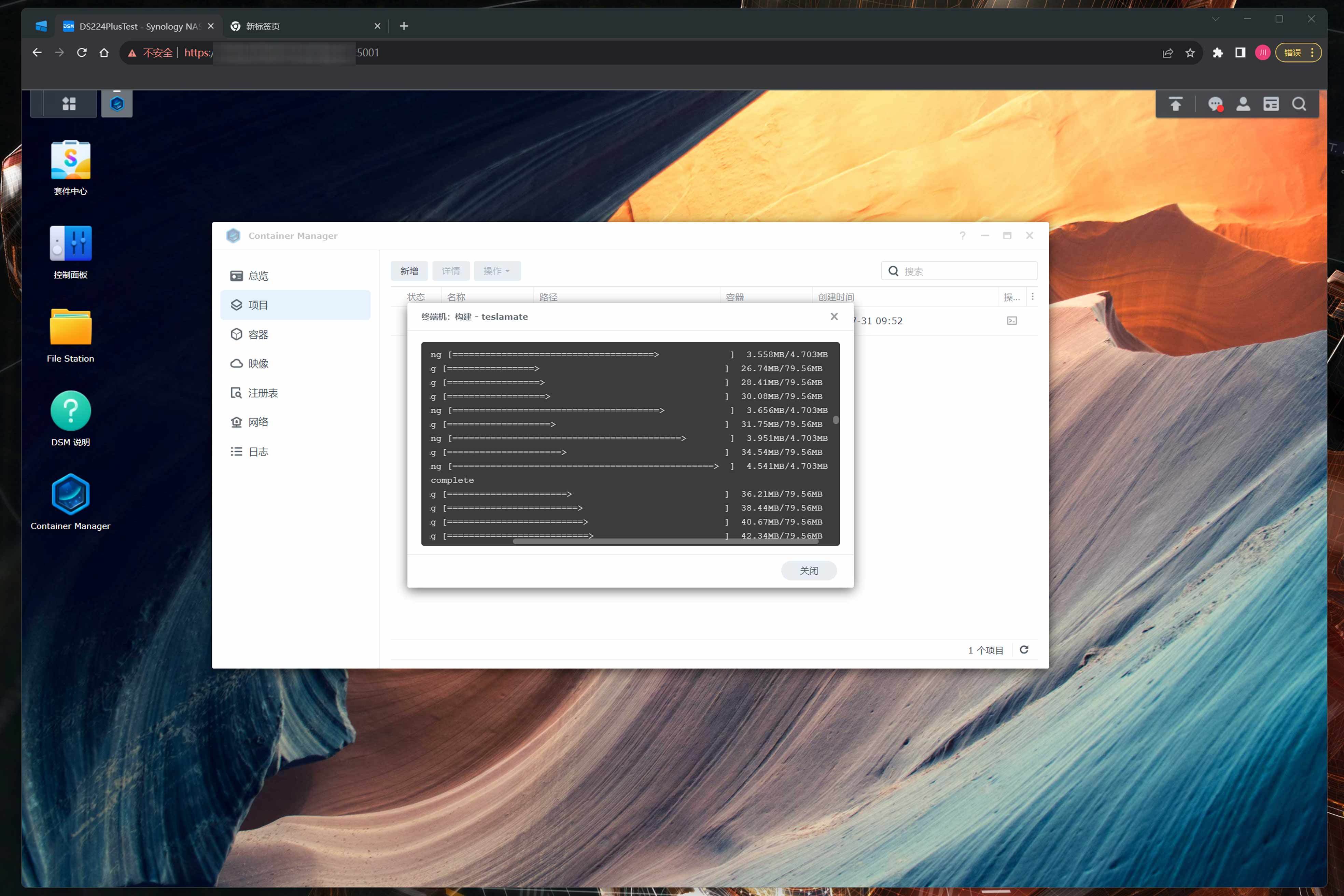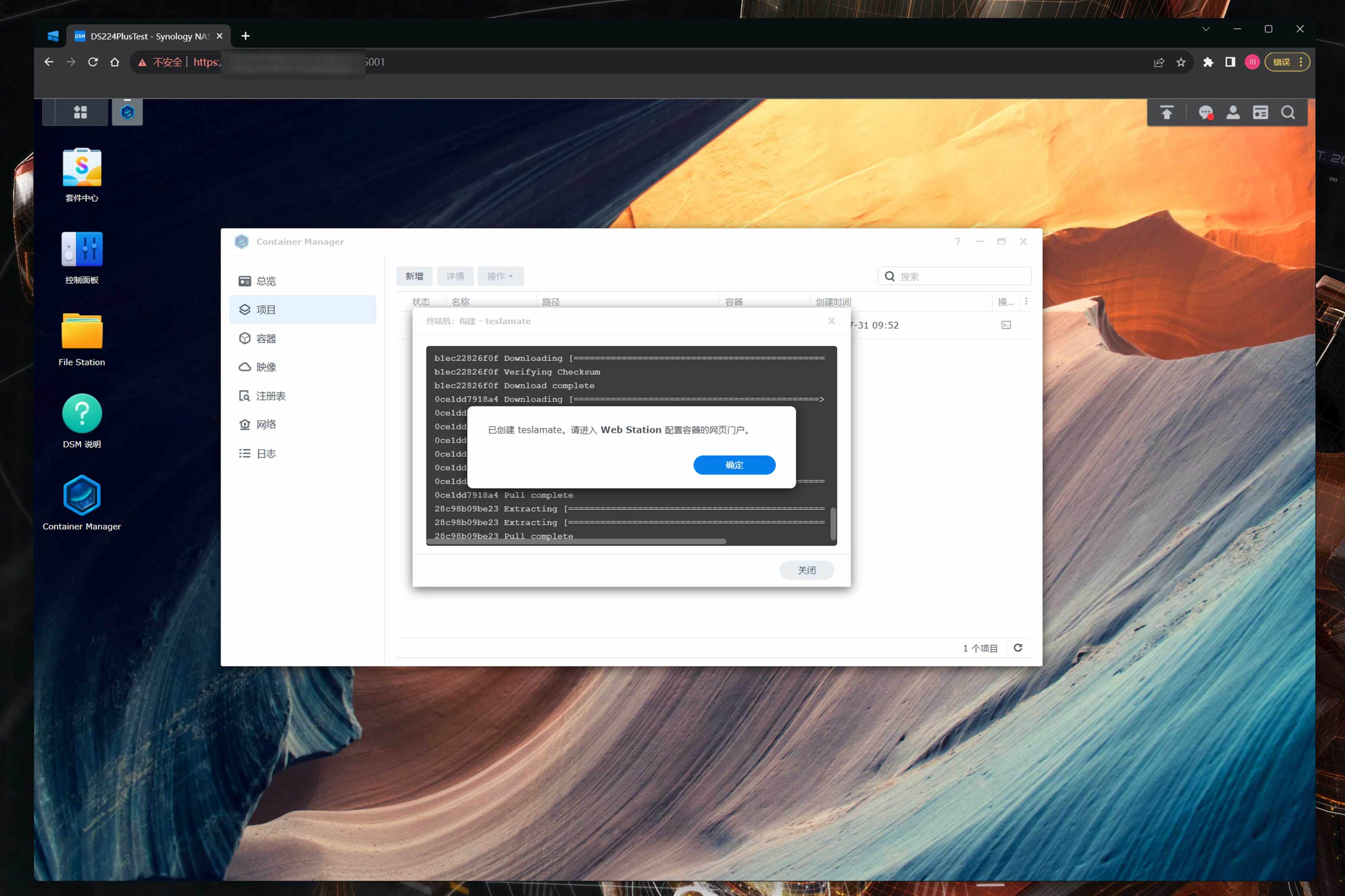 全部确认后开始自动部署容器项目,ContainerStation会弹出一个TUI的对话框,里面会打印出部署进度,方便用户随时监控部署进度。