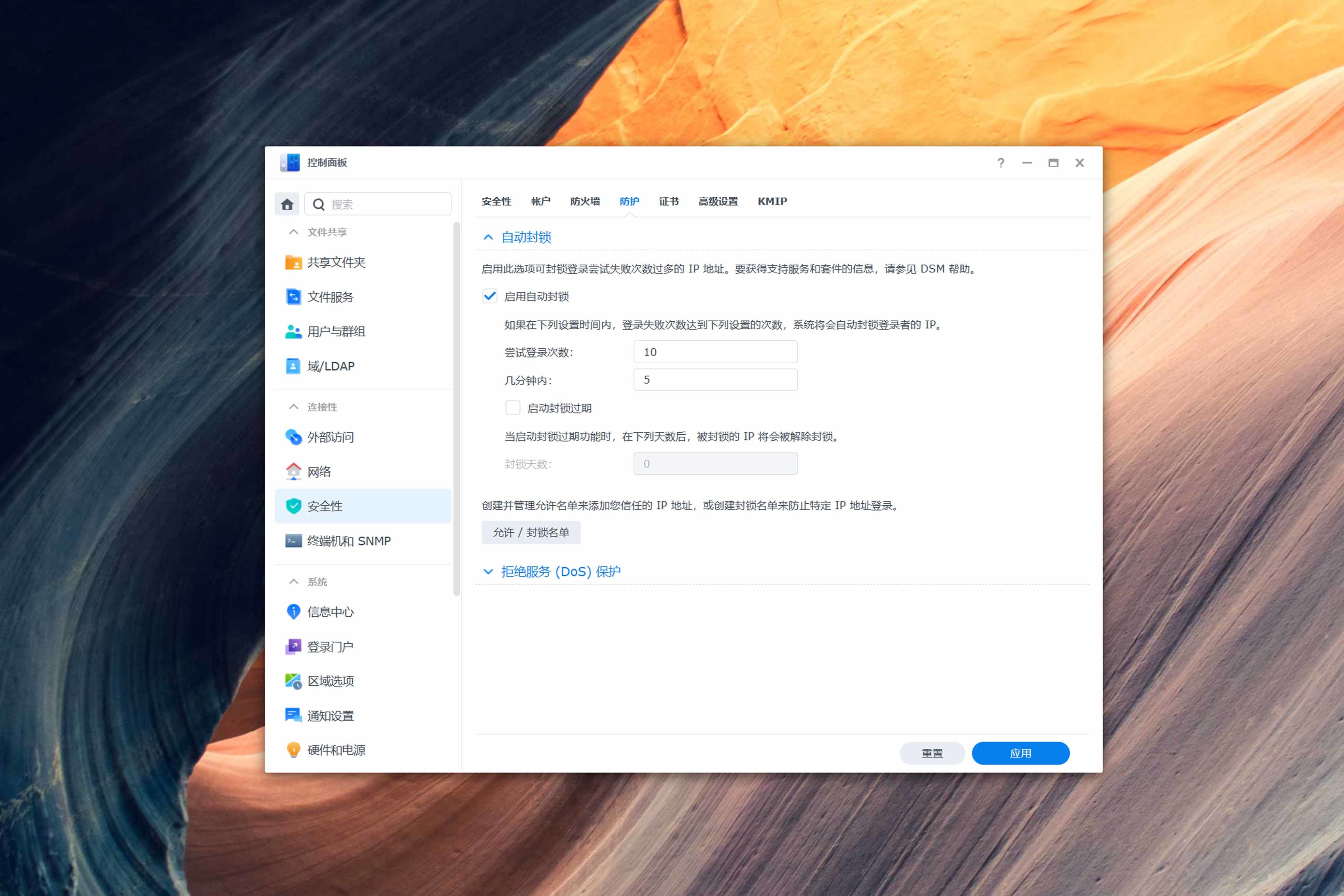 安全一直是群晖比较注重的方向,除了文所说的WriteOnce以外,这次DSM7.2还加强了自动封锁的能力,外网的SMB访问和QuickConnect的非法连接也会触发封锁保护。