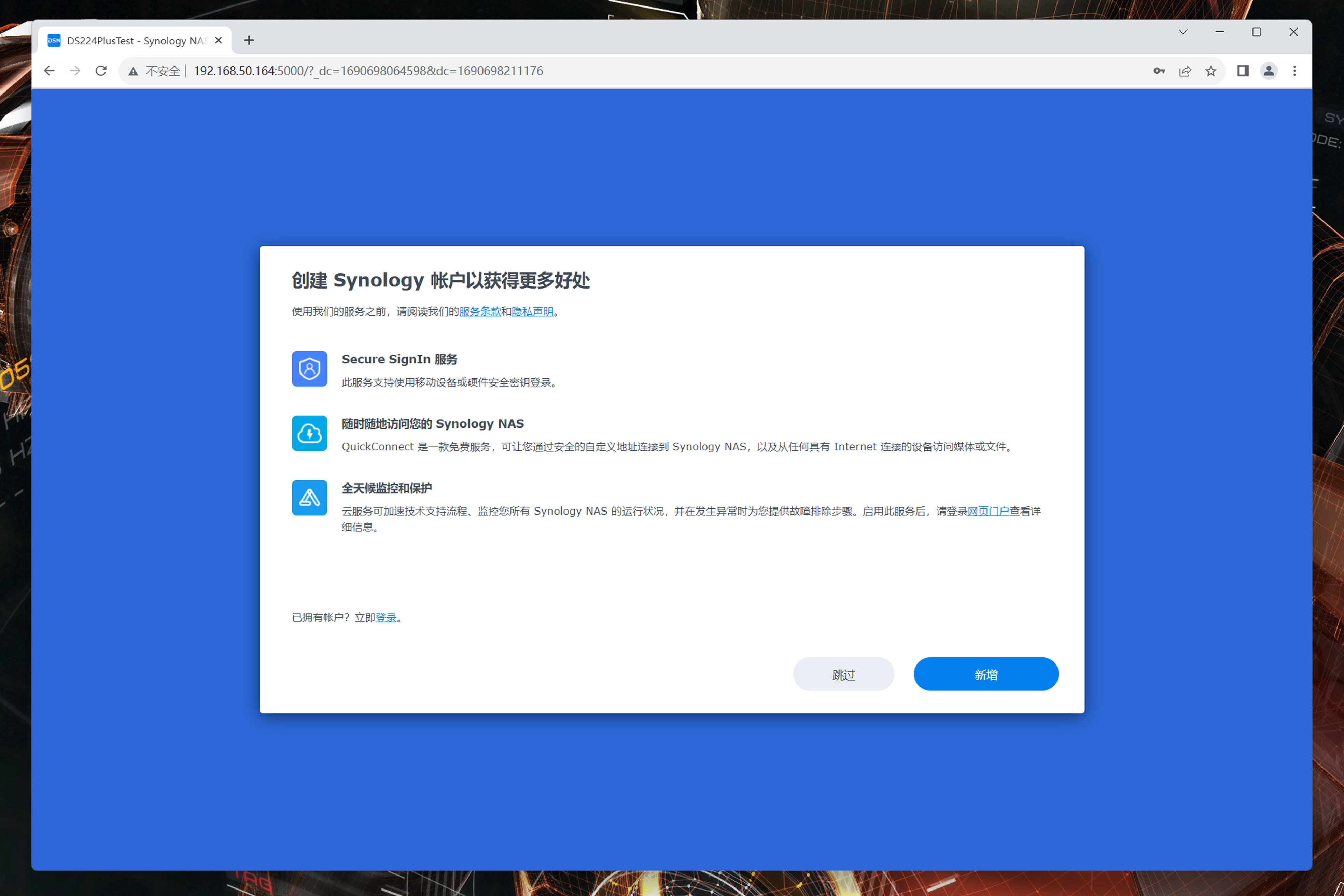 这里多说一句,初始化时建议各位新手注册下群晖账号,登录后开启以下两个功能: