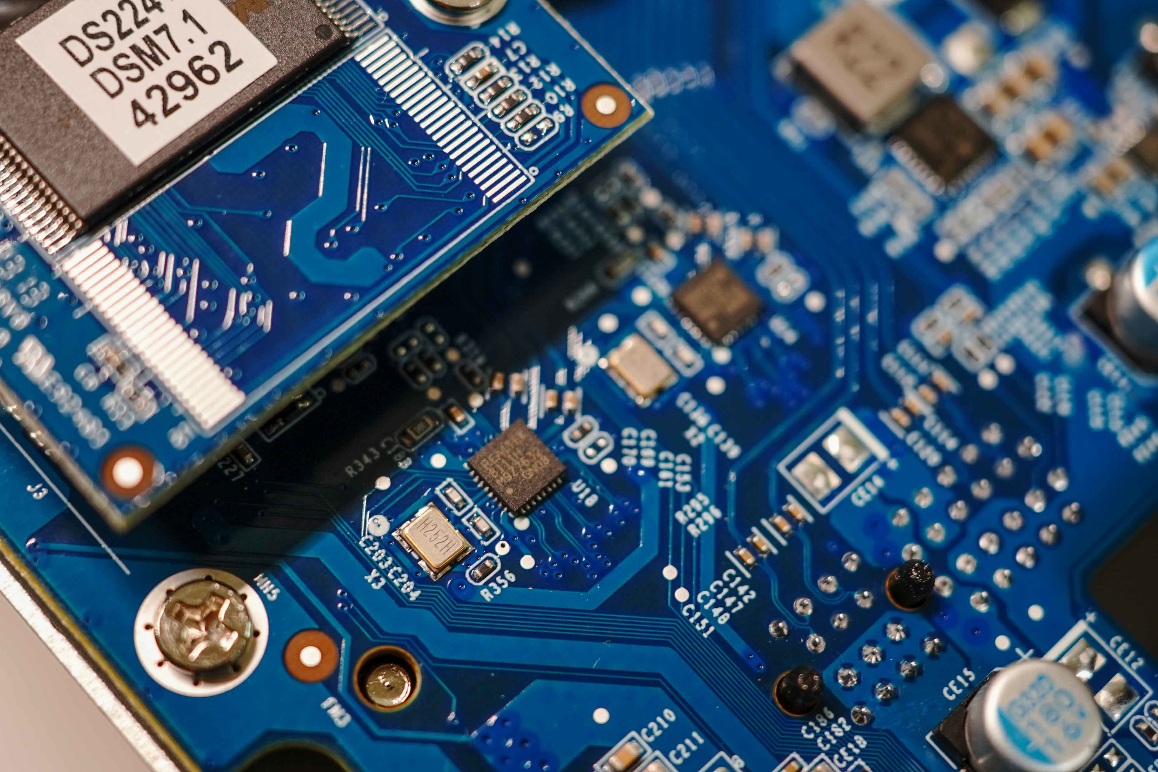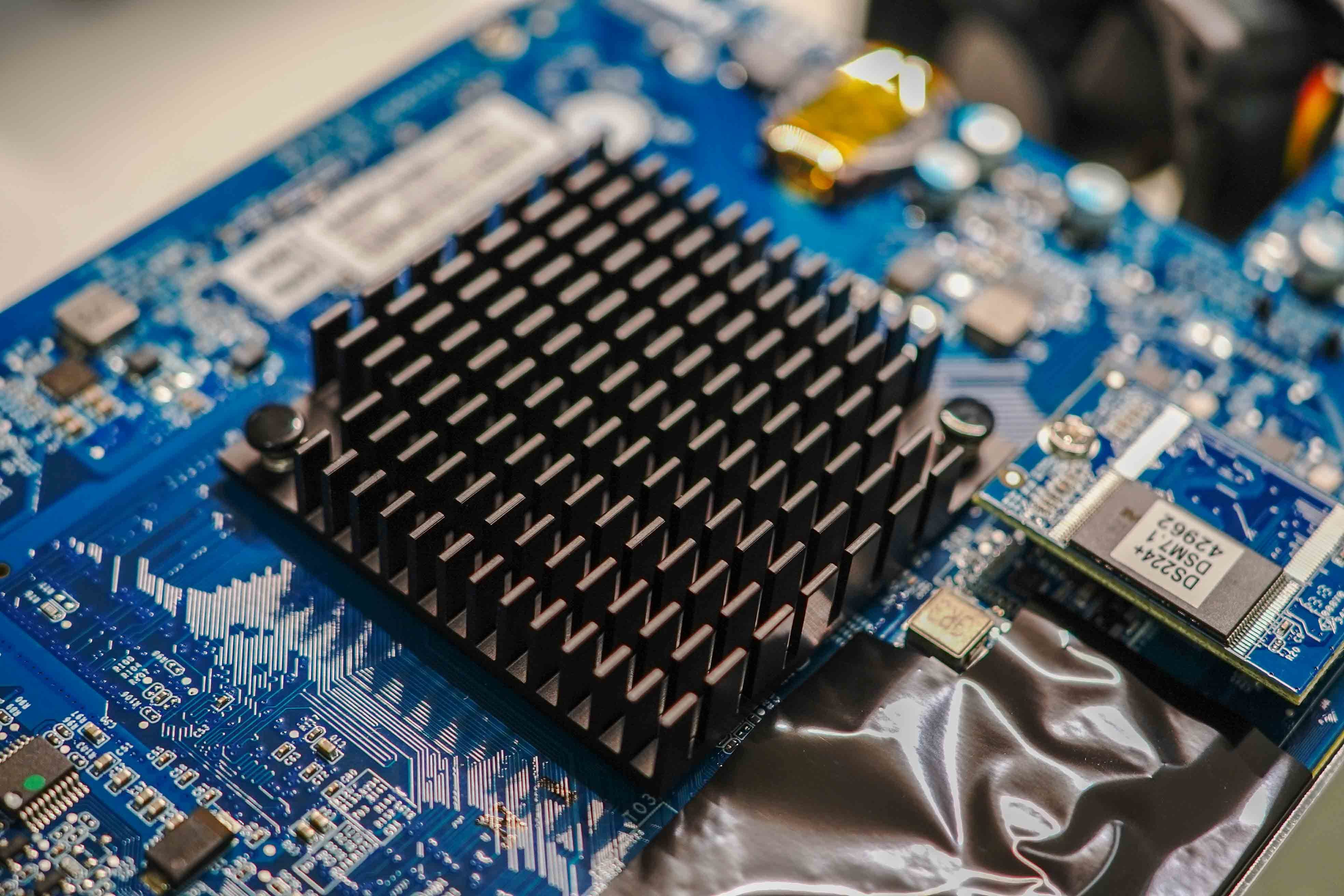 群晖DS224+的主板如下图随时,整体比较干净,其他IC所在位置都尽量远离发热量最大的CPU核心,可以在一定程度上保证设备7*24小时运行的稳定性。