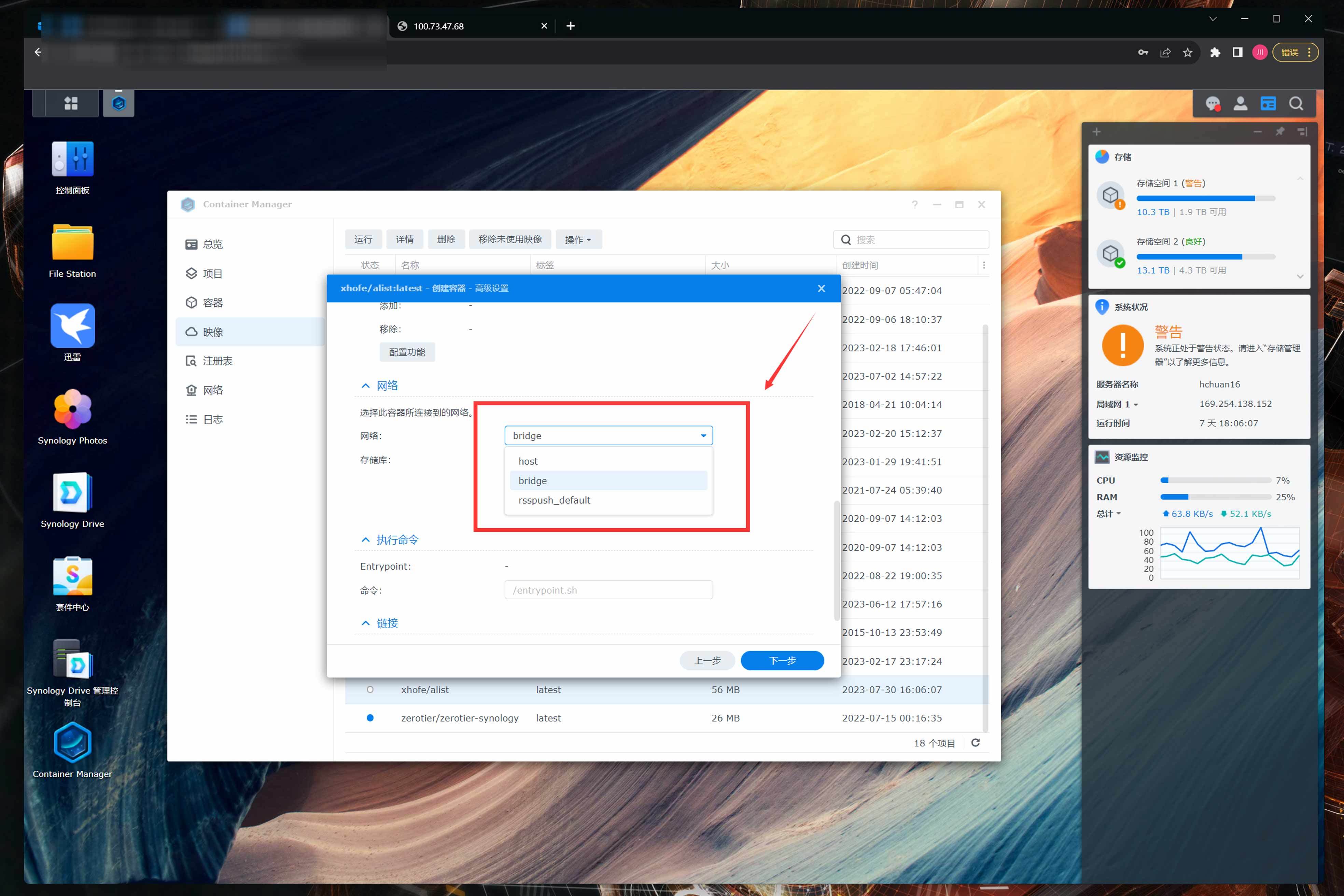 ● 老版本docker支持容器获取IPv6协议的公网IP,所以使用Bridge无所谓,然而新版本ContainerStation默认关闭IPv6功能,所以用IPv6解析域名的用户请改成host模式。