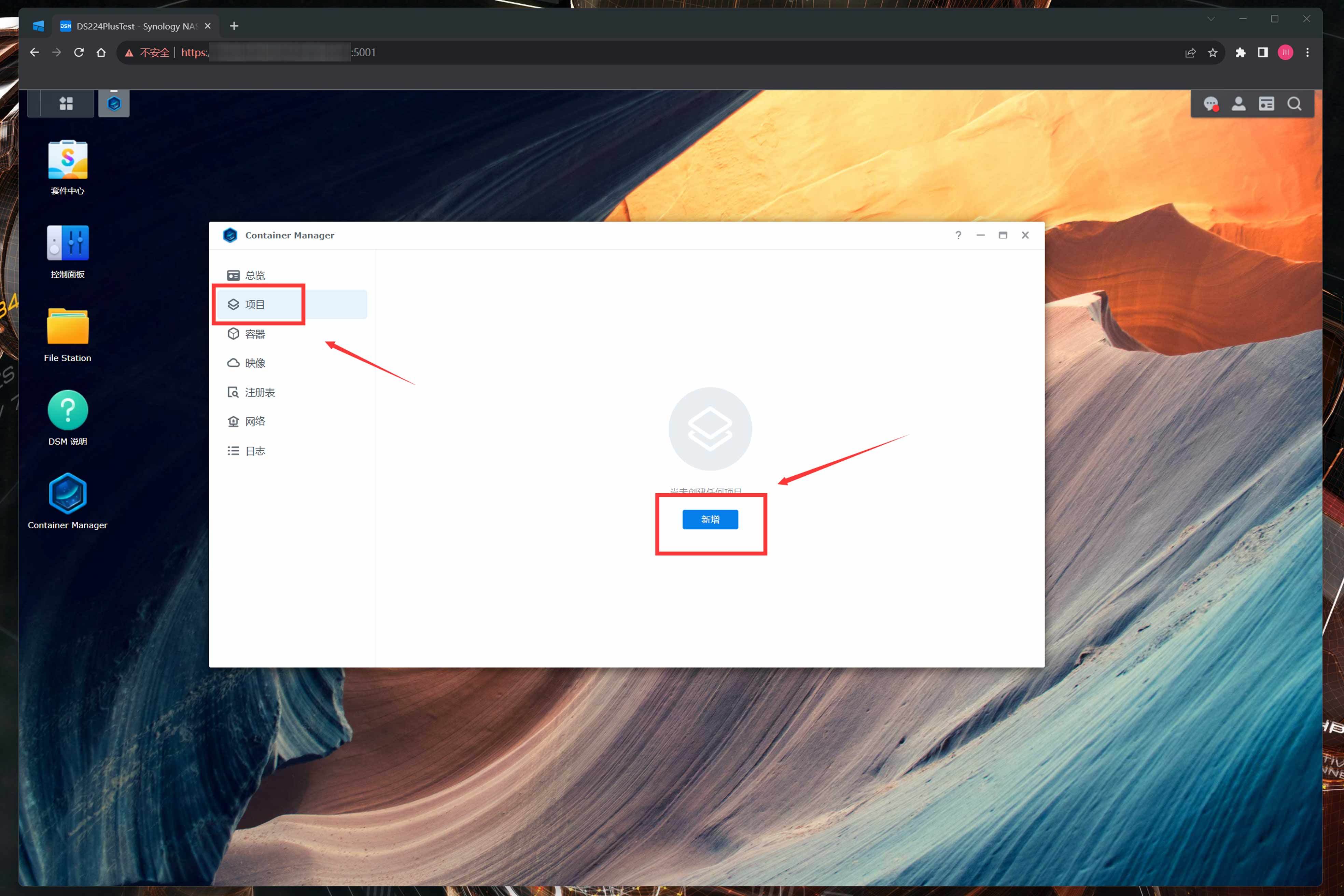 进入ContainerStation,点击项目中的新建,准备开始创建容器。