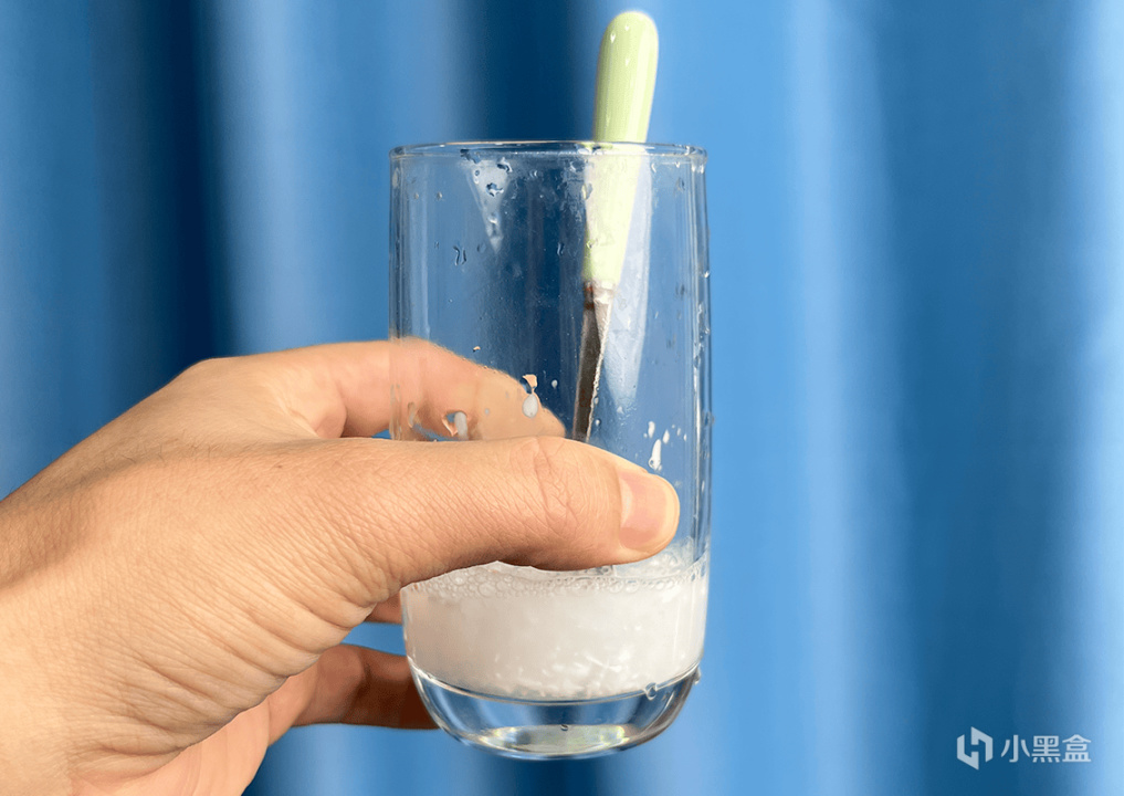 溶于清水中,测试一下PH值,PH值7左右,中性配方,还算亲肤。