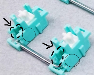 軸體的卡扣有四角的↑和兩邊大卡扣的↓。
