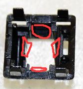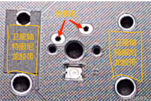 膠帶是給衛星軸部位提示的。紅色箭頭是正常針腳進入的孔洞。(傻子別安裝主軸的地方貼膠,鍵盤會害怕)