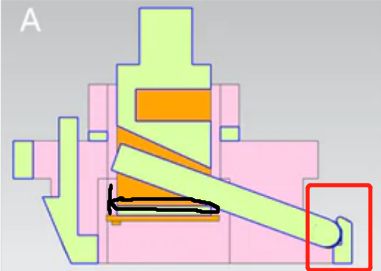 注:圖中↖“凹”槽是給燈留位置,↘下方金屬彈片是和小耳朵接觸。
