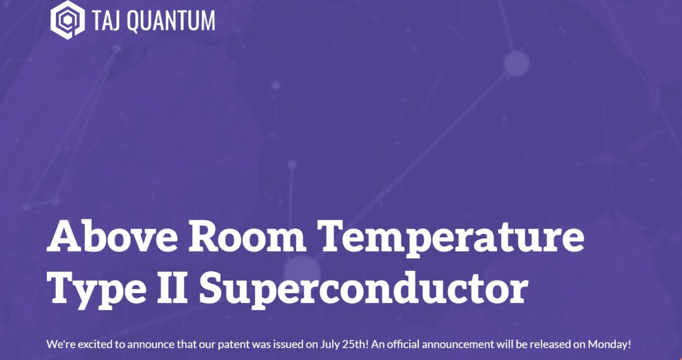 北京时间8月1日凌晨,位于美国佛罗里达州奥兰多的泰吉量子(Taj Quantum)公司发布推特称,“我们很高兴地宣布我们终于被授予了高于室温的第二类(第II类)超导体的专利。与最近从韩国流传的一些论文报道相反。 在论文标题中简单地写上 ‘世界第一 ’并不意味着你就是世界第一。经过 两年多的等待,我们的专利于上周获得授权。请从美国专利商标局(USPTO)网站阅读我们的专利:……”