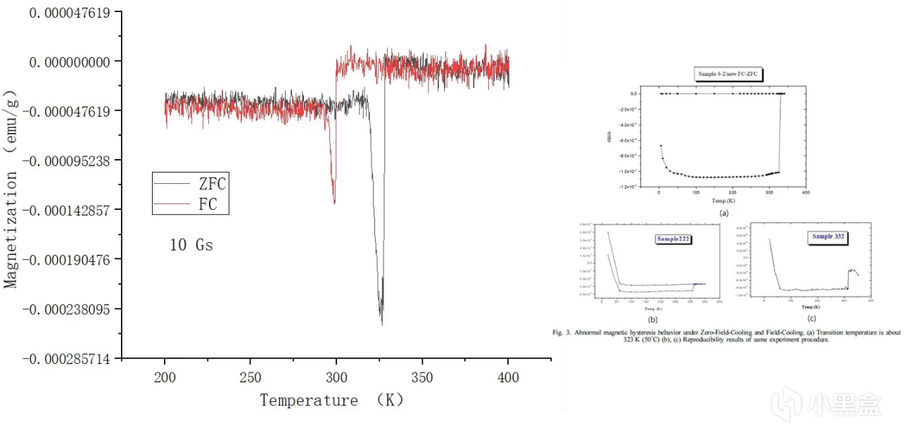 武浩前天在BB空间分享的实验结果中,也发现虽然自己制备的LK-99抗磁性弱,但是可以明显看到材料磁性从零到负,在323K左右有一个明显的相变,这是很多抗磁性金属不具有的特点,在这一点上与韩国原团队论文数据是吻合的。