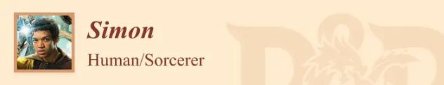 西蒙是一位有着强大法师血脉的菜鸡术士,他拥有来自于古老法师血脉的魔法力量,但只会几个简单的魔法。他是一个天真无邪、好奇心强、爱冒险的少年。他被已经成为盗贼的埃德金发现并带走,成为了盗贼团伙的一员。西蒙擅长使用元素魔法,尤其是火焰魔法。他还有着一根能让他短距离传送的魔杖“来去杖”。西蒙虽然天赋异禀,但也经常因为控制不好自己的力量而闯祸。