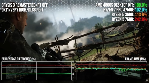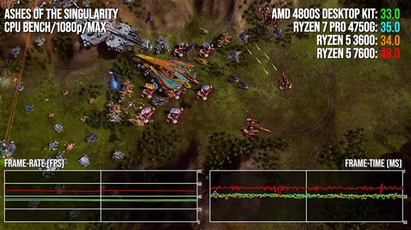 測試中,4800S對比同樣Zen2架構的6核心銳龍5 3600 3.6-4.2GHz、8核心銳龍7 PRO 4750G 3.6-4.4GHz,CPU性能、遊戲性能都相當接近,差距不大,最多也就10%左右。