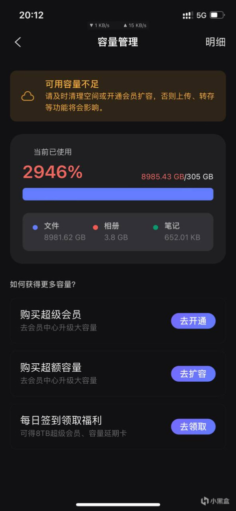而且阿里云签到送的vip可将存储空间扩展到8T,你可以将8T空间全部塞满,当vip时间过期时,这些文件并不会被删除,并且同样可以去观看,这也是白嫖的一个点。